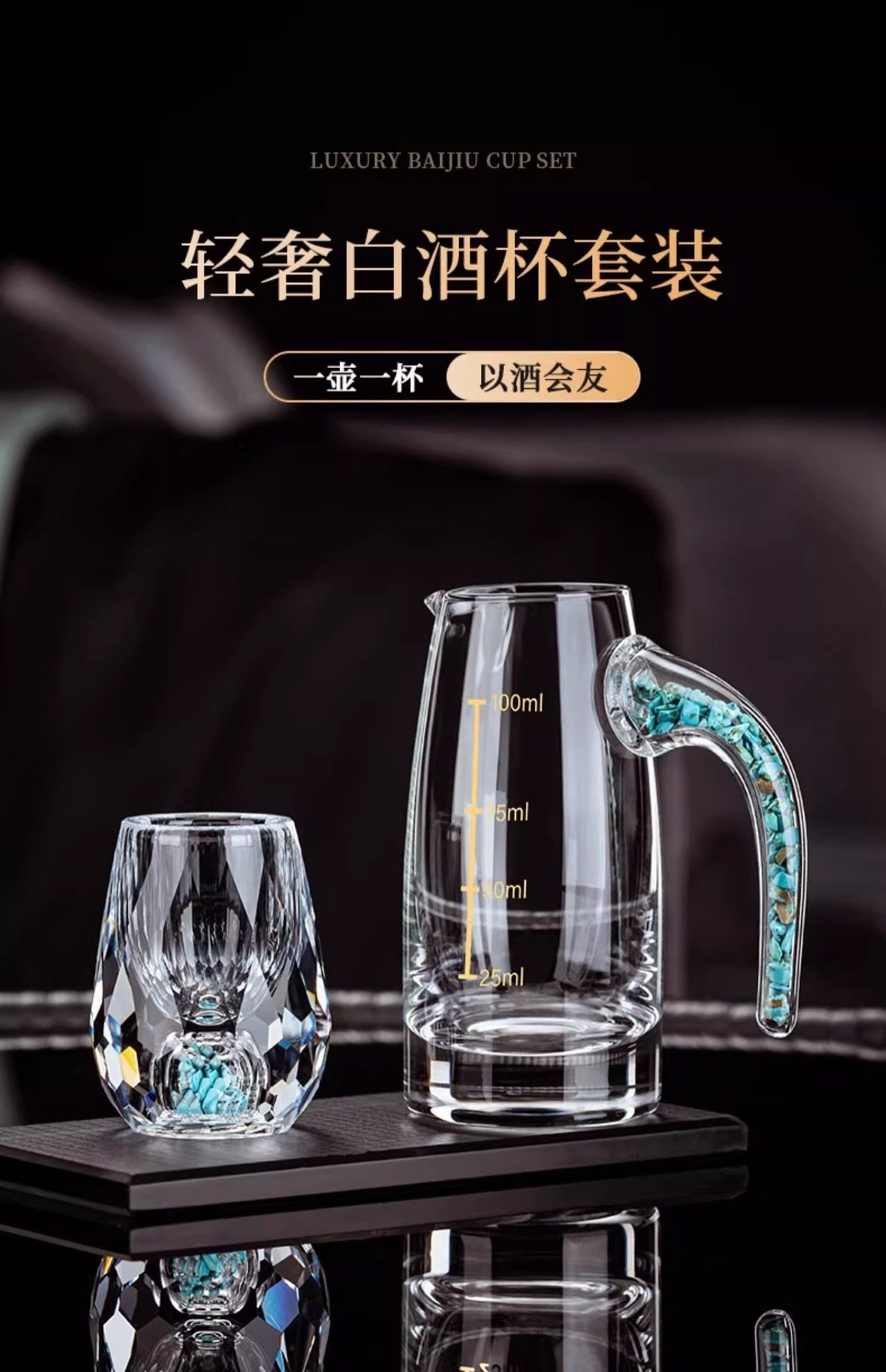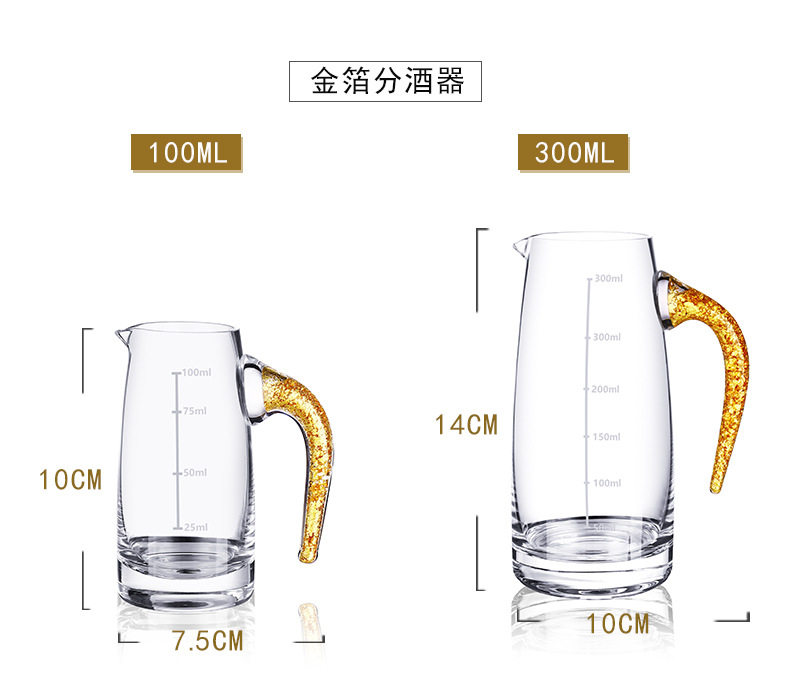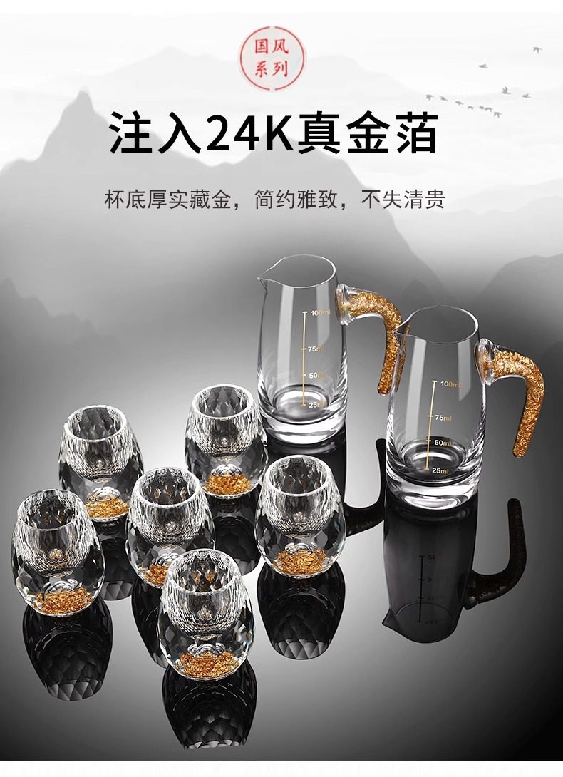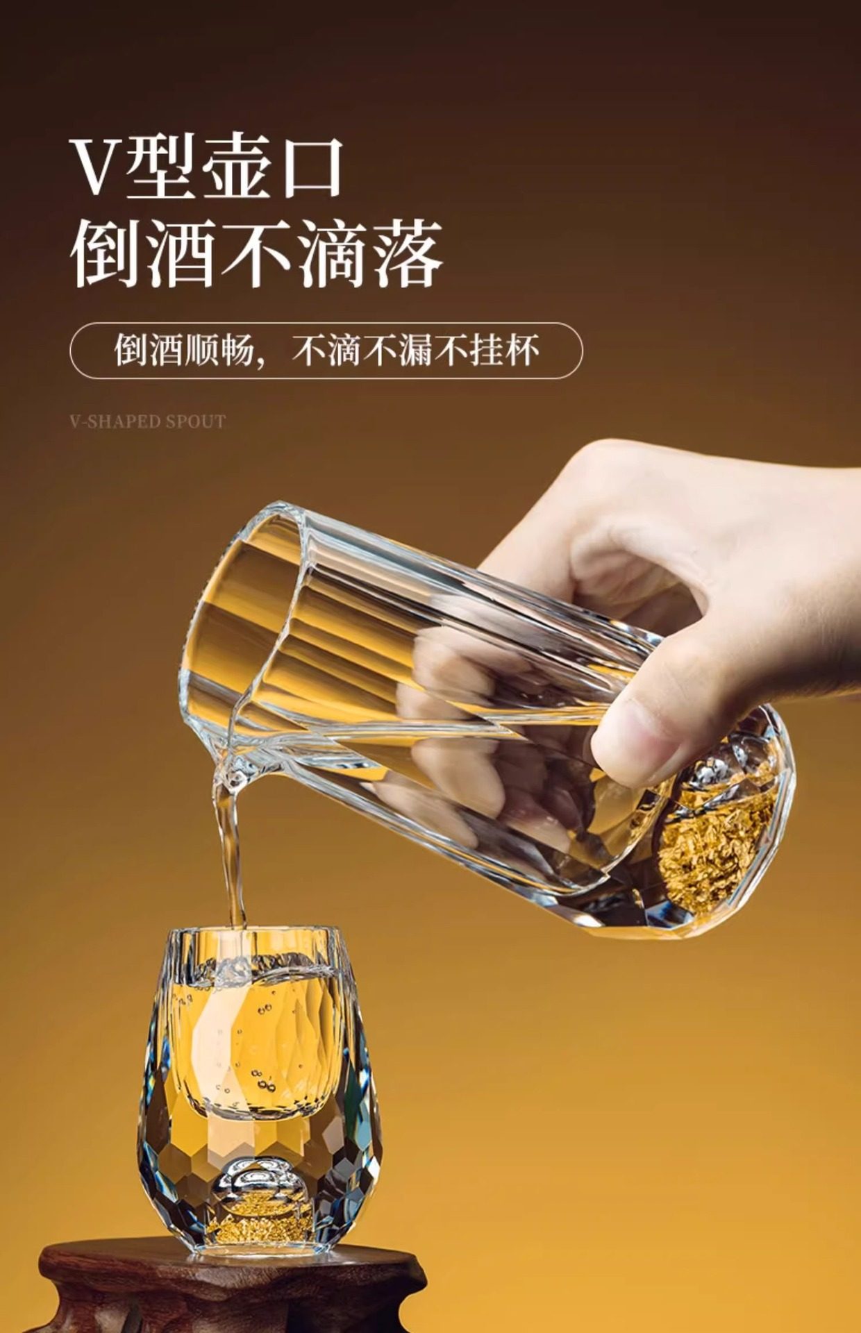 High-End Gold Foil Thickened Liquor Dispenser, White Wine Cup, Crystal Glass Cup, Household Graduated Small Wine Cup, Chinese-Style Wine Cup, Wine Set