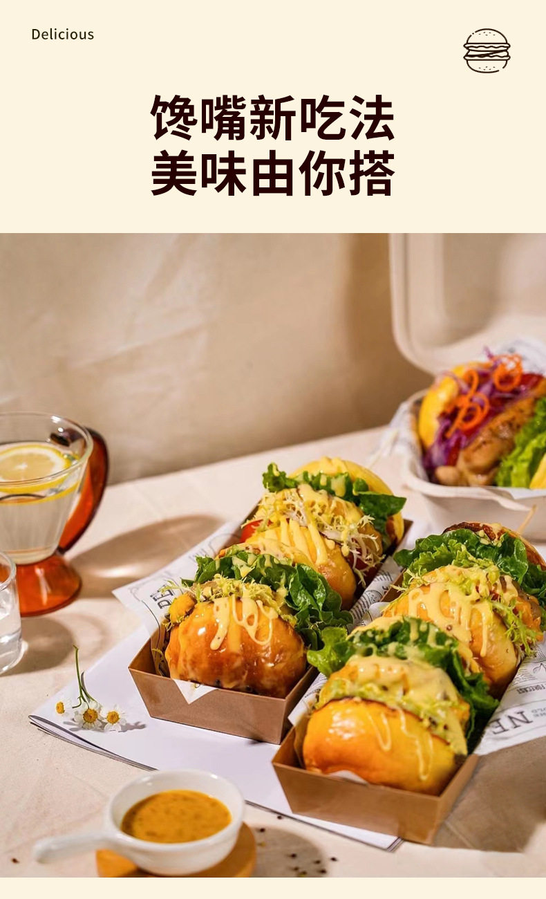 | Taste | Mini egg burger embryo 5.5cm (12 pieces) mini spinach burger embryo 5.5cm (12 pieces) mini sesame burger embryo 5.5cm (1 piece) |