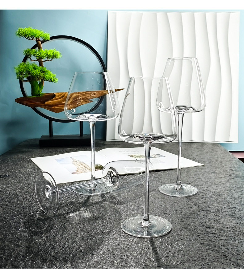 Red Wine Glass Transparent Burgundy Lead-Free Crystal Glass Big Belly Goblet Bordeaux Glass Concave Bottom Wine Glass
