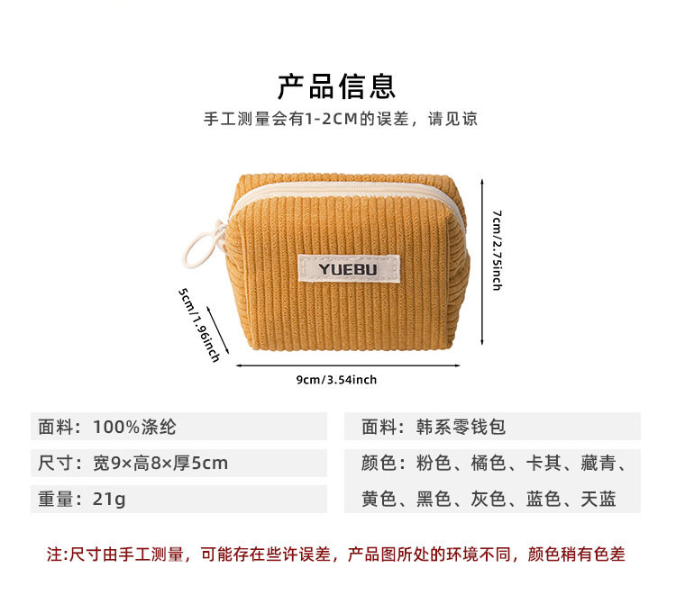 Ins Retro Corduroy Pure Color Simple Coin Purse Bluetooth Headset and Coin Purse Versatile