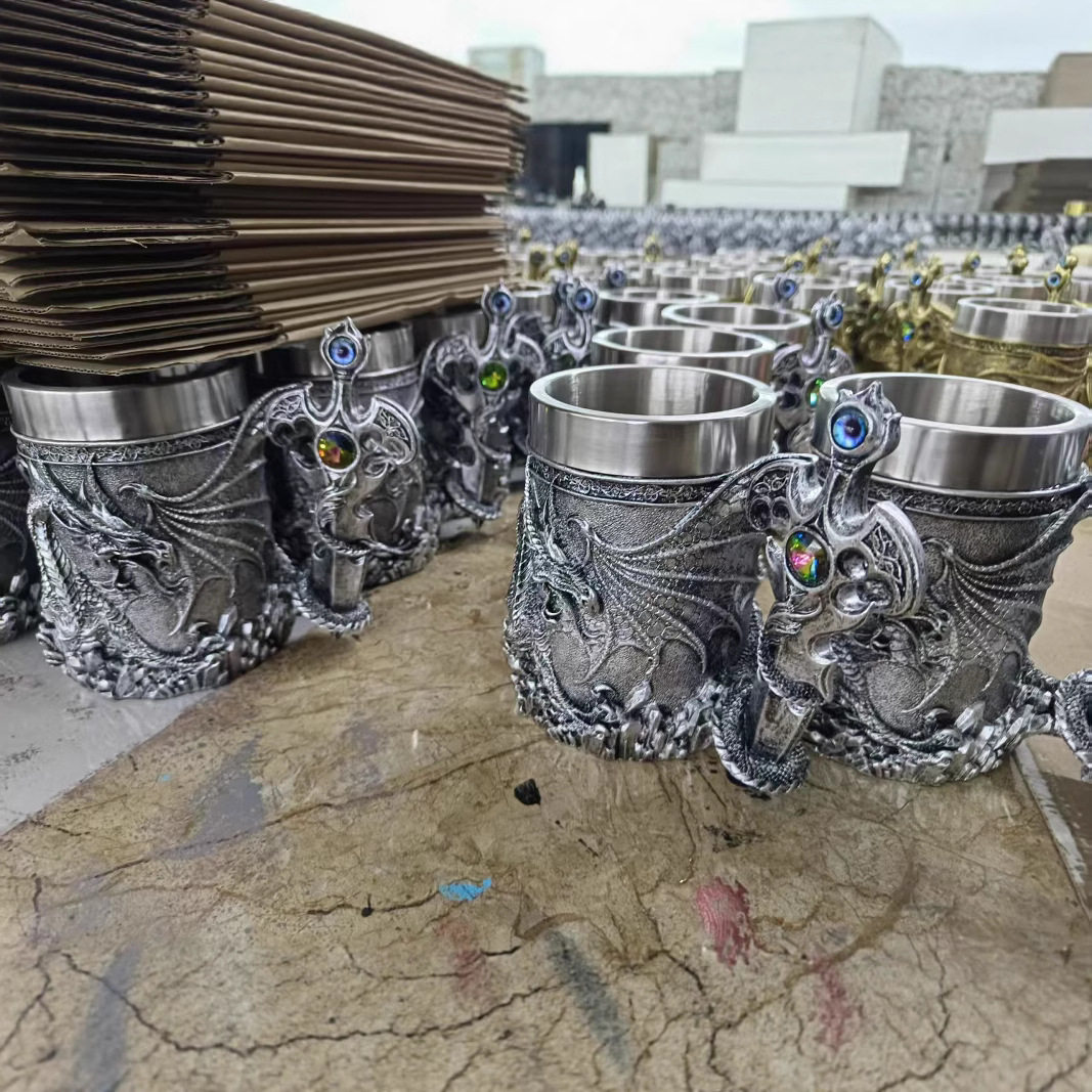 Retro Cross Flying Dragon Goblet Resin Stainless Steel Wine Glass Halloween Ornament Cup Cocktail Specialty Wine Glass