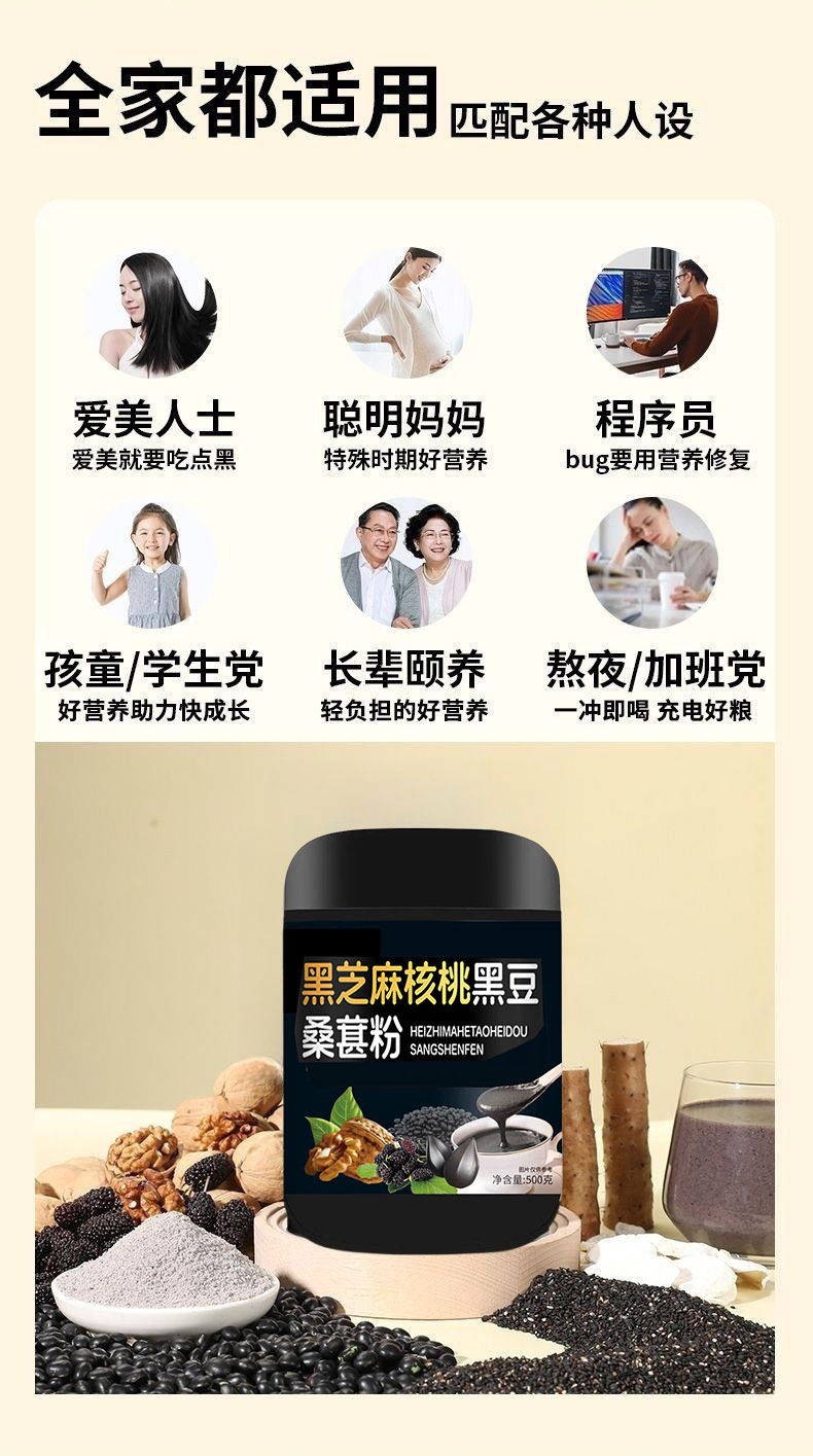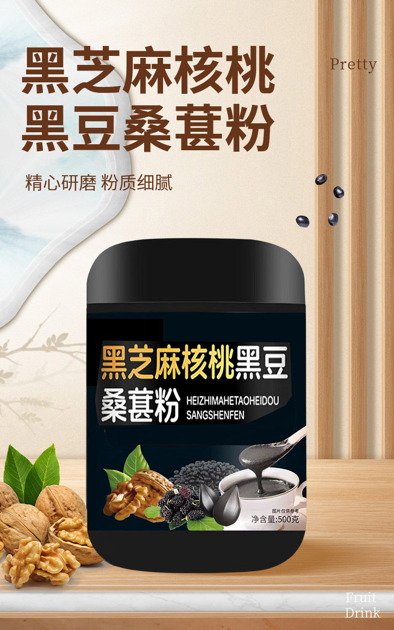 Black Sesame, Walnut, Black Bean, Mulberry Powder, Meal Replacement Powder, Five-Grain Black Sesame Paste Powder, Breakfast Barrel, Ready-Made Wholesale Agent