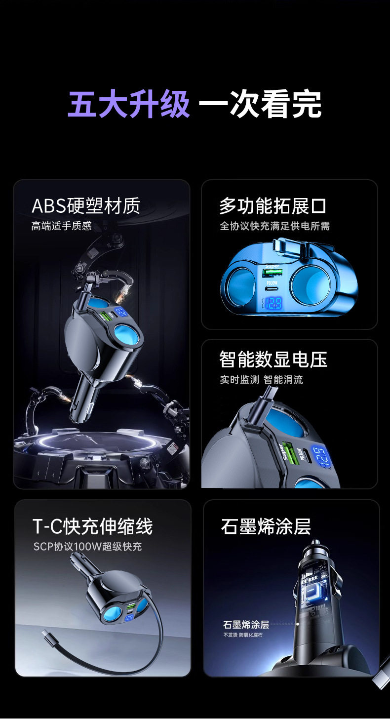 | Color | Double smoke hole expansion] telescopic cable 120w digital display version,[double smoke hole expansion] 100w digital display bluetooth version,[double smoke hole expansion] qc3.0+3.1a digital display version,[double smoke hole expansion] 3.1a digital display version |