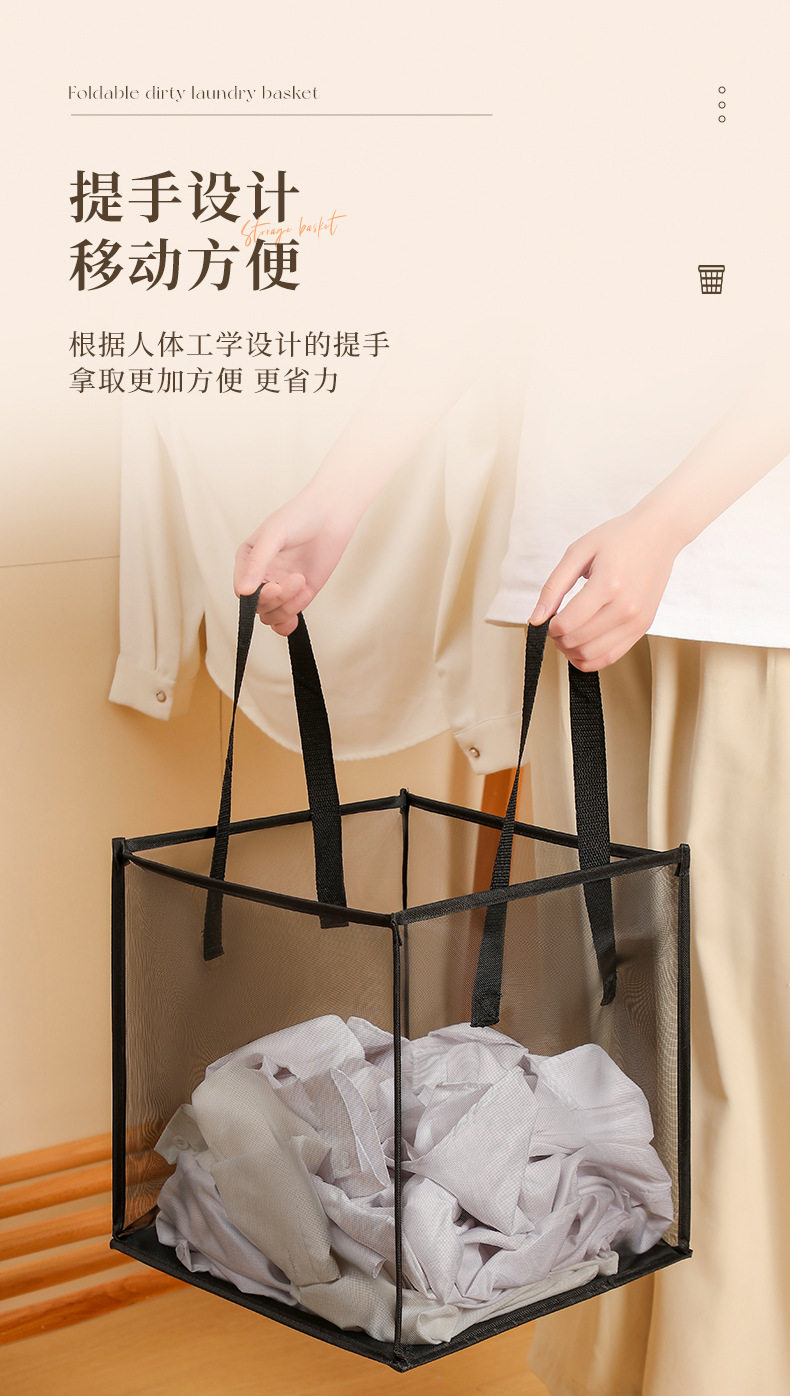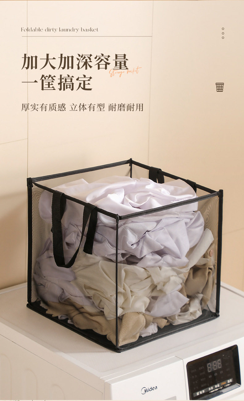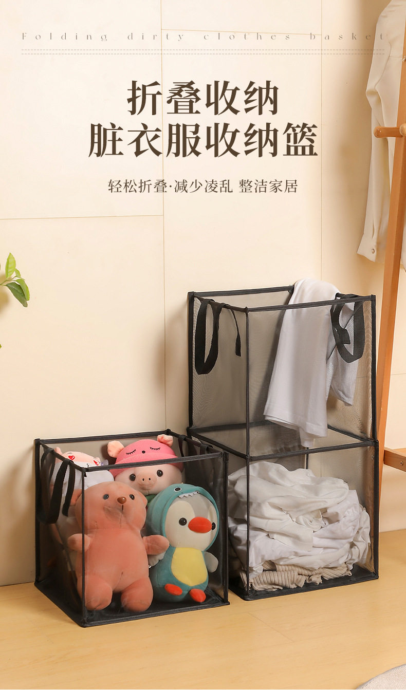 Square Mesh Laundry Basket, Foldable Household Storage Basket for Miscellaneous Items and Toys, Large Capacity Bathroom Portable Laundry Basket