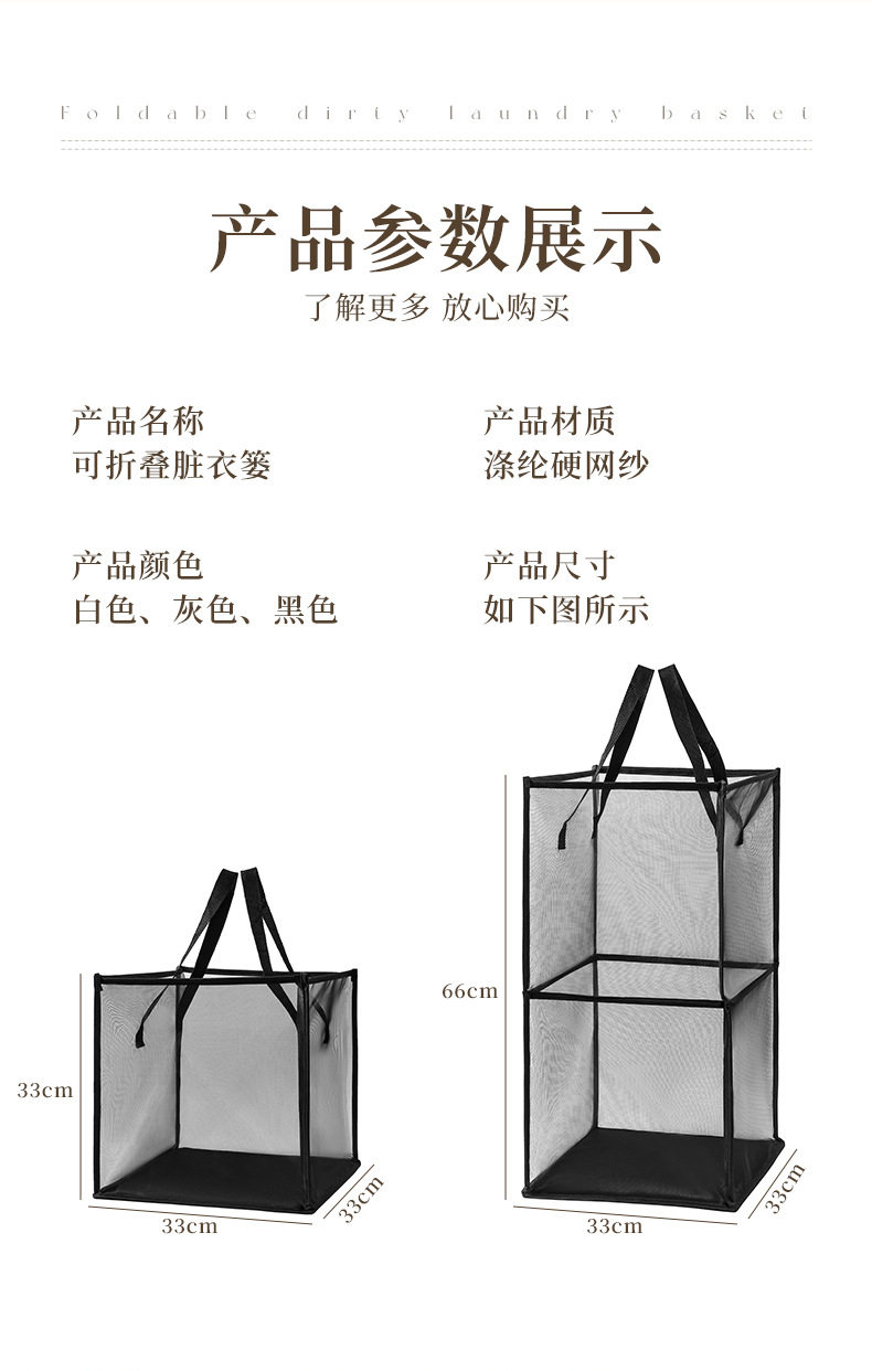 | Specification | 33*33*33 single compartment dirty clothes basket,33*33*66 double compartment dirty clothes basket |