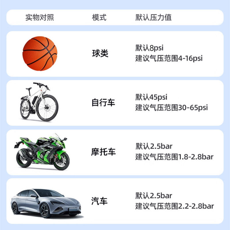 | Additional features | Lighting,Tire pressure gauge,Warning light,Usb charging |
