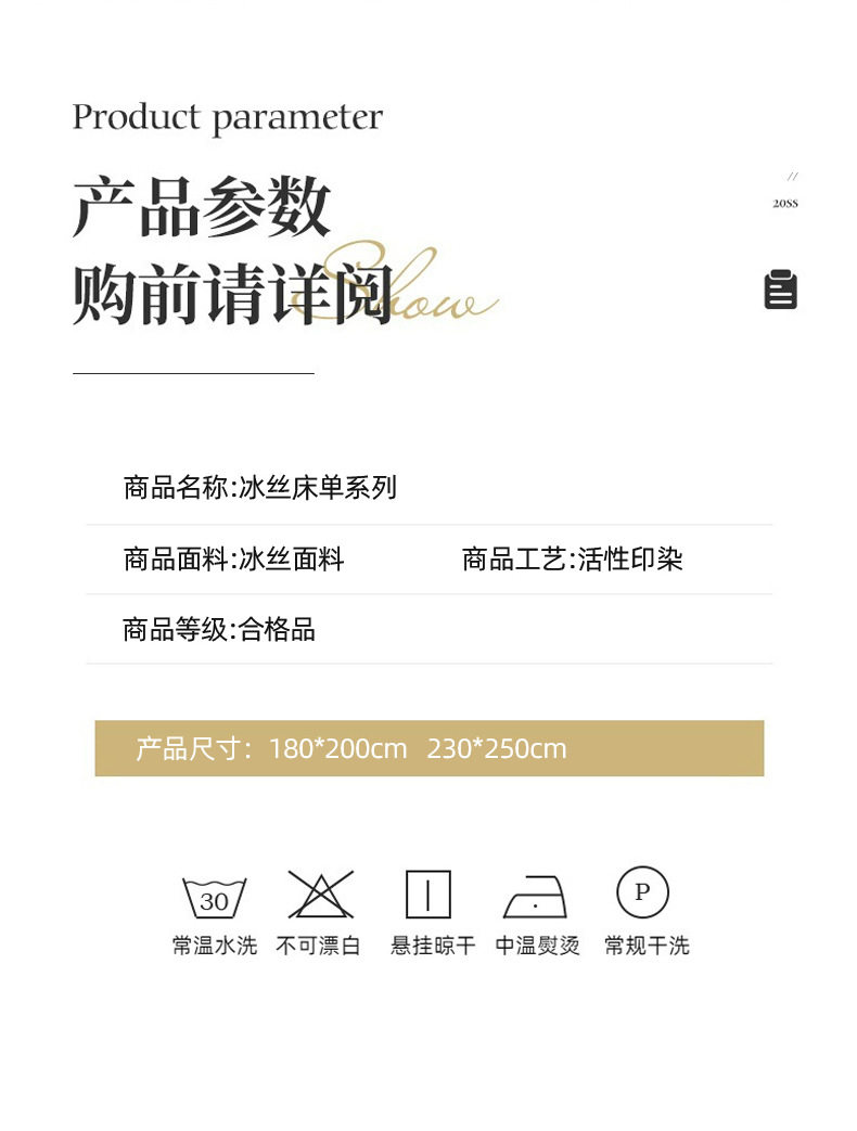 | Size Specifications | Bed sheets120cmx230cm,Bed sheets180cmx230cm,Sheets230cmx250cm,48x74cm pillowcase/pair,Bed sheets120cmx230cm three-piece set,Bed sheets180cmx230cm three-piece set,Bed sheets230cmx250cm three-piece set |