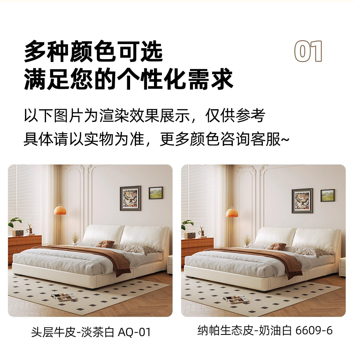 | Color | Thickened nappa eco-leather / upgraded ribbed frame,Thickened nappa ecological leather + d18 mattress/upgraded slatted frame,Thickened nappa eco-leather + nightstand *1 / upgraded slatted frame,Thickened nappa eco-leather + nightstands *2 / upgraded slatted frame,Thickened nappa ecological leather + d18 pad + cabinet * 1 / upgraded frame,Thickened nappa ecological leather + d18 pad + cabinet * 2 / upgraded rack,First-layer cowhide/upgraded rib frame,First layer cowhide+d18 mattress/upgraded frame,First layer of cowhide+bedside table*1/upgraded frame,First-layer cowhide+bedside table*2/upgraded frame,First layer of cowhide+d18 pad+cabinet*1/upgraded frame,First layer of cowhide+d18 pad+cabinet*2/upgraded frame,First-layer cowhide/encrypted upgraded rib frame,First layer cowhide+d18 mattress/encrypted upgraded frame,First-layer cowhide+bedside table*1/encrypted upgraded frame,First-layer cowhide+bedside table*2/encrypted upgraded frame,First layer of cowhide+d18 pad+cabinet*1/encrypted upgraded frame,First layer of cowhide+d18 pad+cabinet*2/encrypted upgraded frame |