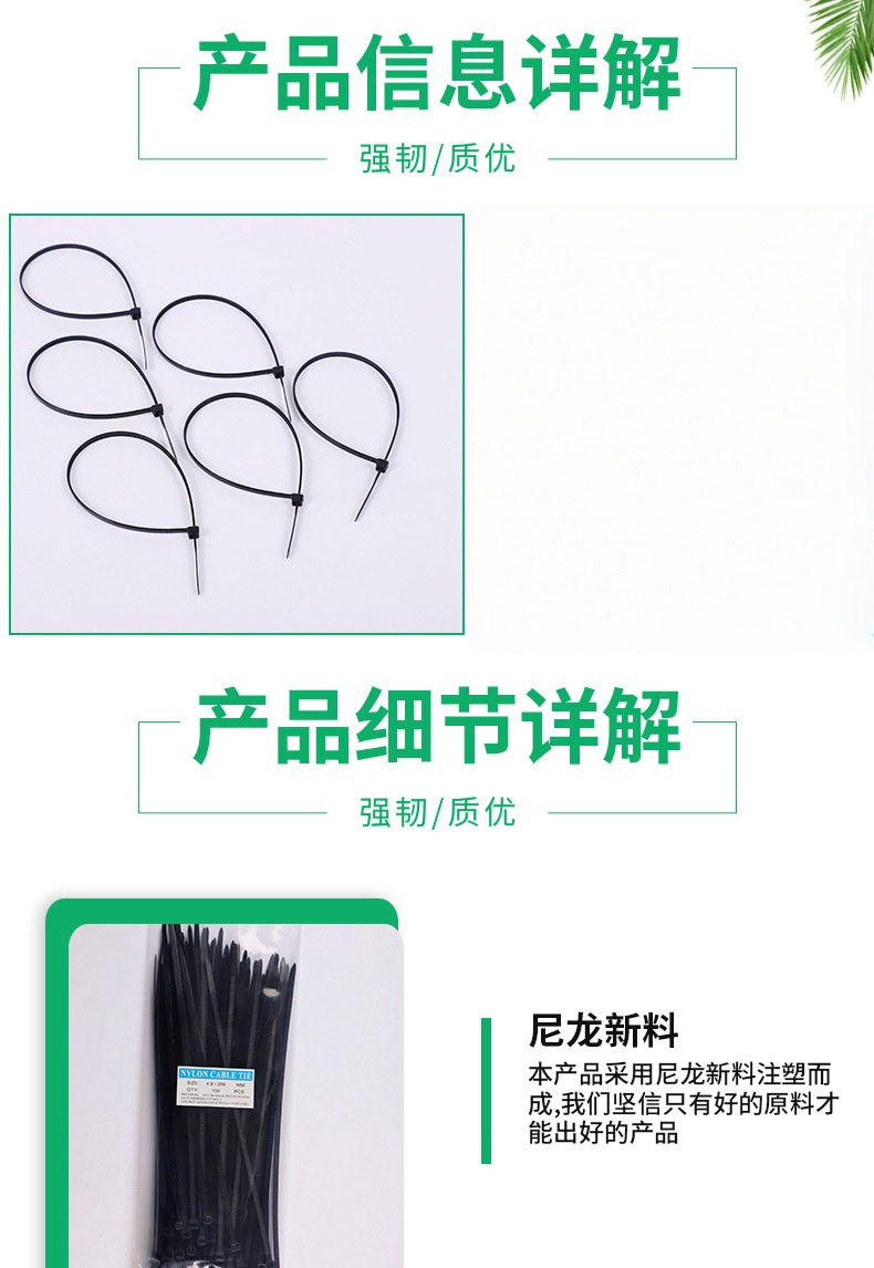 Cross-Border Wholesale Direct Sales Self-Locking Nylon Cable Ties Multi-Specification White Black Cable Ties Gardening