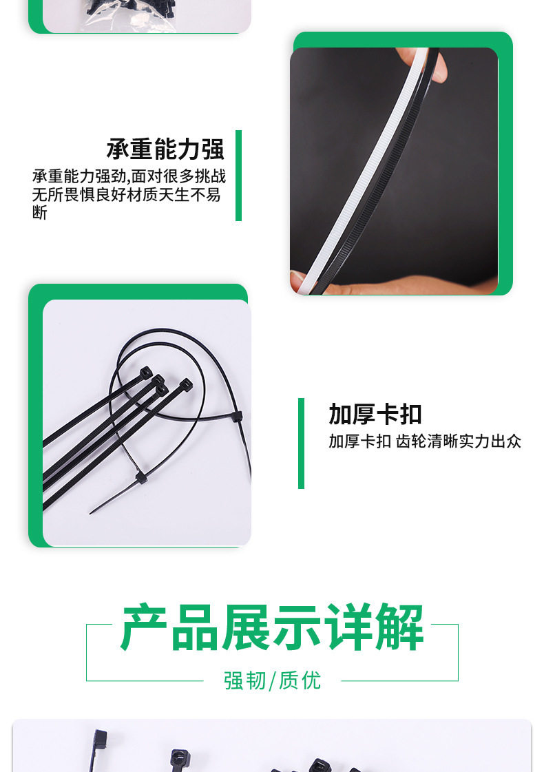 | Specifications and models | Black; bag; (1.9mm) 3*100 non-standard 100 pieces,Black; bag; (1.9mm) 3*150 non-standard 100 pieces,Black; bag; (1.9mm) 3*200 non-standard 100 pieces,Black; bag; (3.6mm) 4*100 national standard 100 strips,Black; bag; (3.6mm) 4*150 national standard 100 strips,Black; bag; (3.6mm) 4*200 national standard 100 strips,Black; bag; (3.6mm) 4*250 national standard 100 strips,Black; bag; (3.6mm) 4*300 national standard 100 strips,Black; bag; (2.5mm) 3*100 non-standard 100 pieces,Black; bag; (2.5mm) 3*150 non-standard 100 pieces,Black; bag; (2.5mm) 3*200 non-standard 100 pieces,White; bag; (1.9mm) 3*100 non-standard 100 pieces,White; bag; (1.9mm) 3*150 non-standard 100 pieces,White; bag; (1.9mm) 3*200 non-standard 100 pieces,White; bag; (3.6mm) 4*100 national standard 100 strips,White; package; (3.6mm) 4*150 national standard 100 strips,White; bag; (3.6mm) 4*200 national standard 100 strips,White; package; (3.6mm) 4*250 national standard 100 strips,White; package; (3.6mm) 4*300 national standard 100 strips,White; bag; (2.5mm) 3*100 non-standard 100 pieces,White; bag; (2.5mm) 3*150 non-standard 100 pieces,White; package; (2.5mm) 3*200 non-standard 100 pieces |