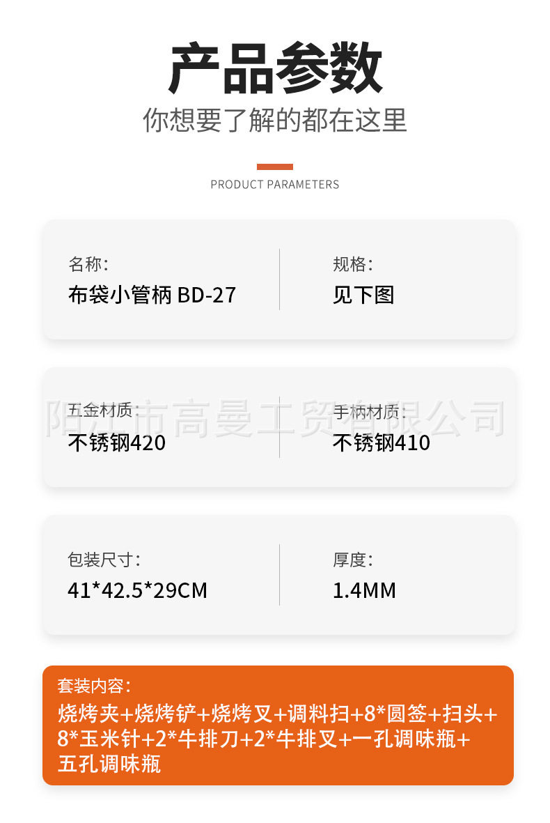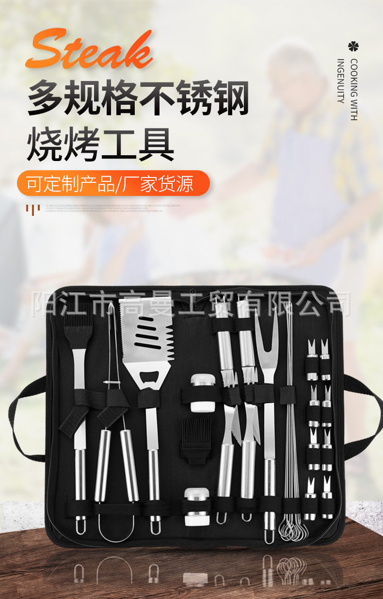 Factory Export Cross-Border E-Commerce Customized Wholesale Barbecue Tool Set Combination Portable Various Cloth Bags Small Tube Handles
