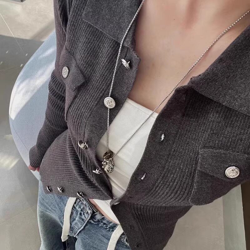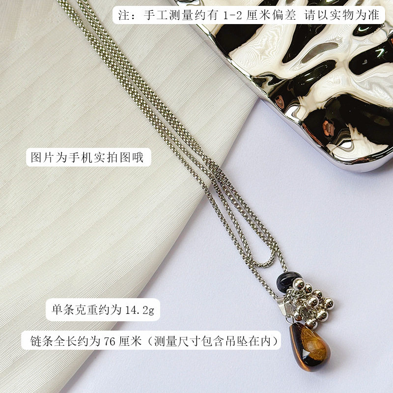 Blogger's Same Style Grape Cluster Tiger's Eye Long Necklace for Women, Niche Design, Vintage Light Luxury Fashion Versatile Choker