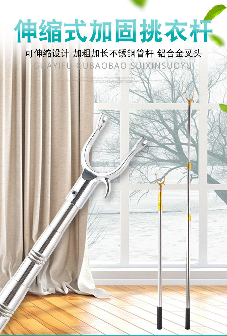 Clothes Drying Rod, Clothes Rod, Clothes Drying Fork, Clothes Rod, Telescopic Clothes Rod, Household Drying Stainless Steel. Mimi Extended Clothes Fork Rod
