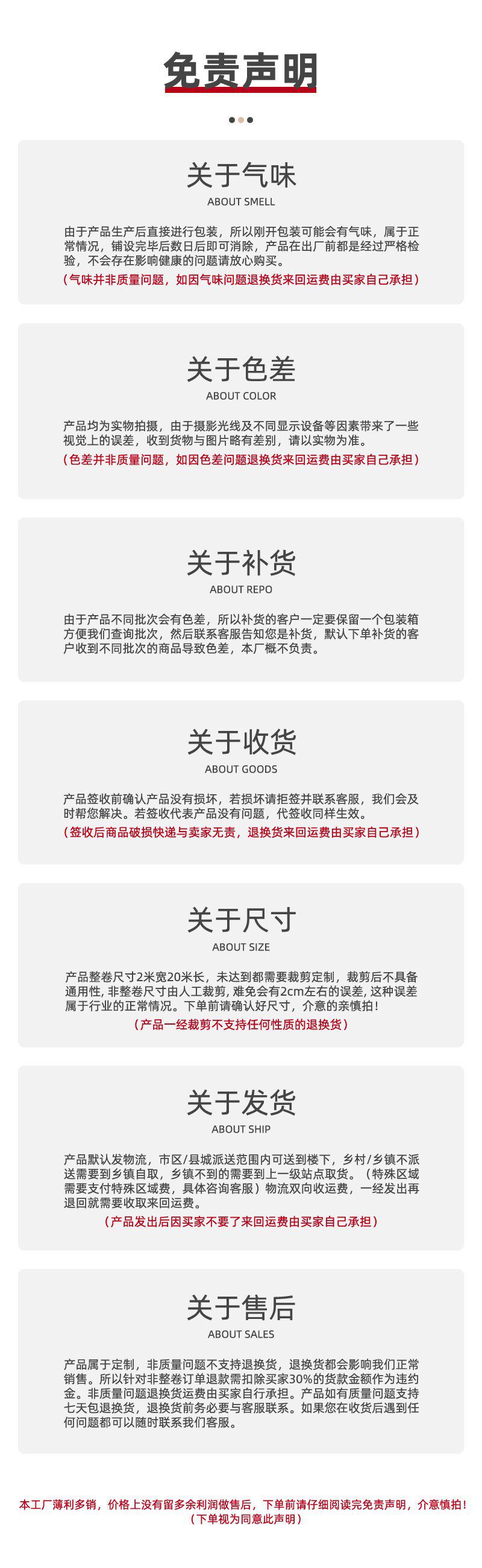| Color | Free sample block-send remark color,The actual sample booklet has a more complete range of designs and colors,—————-pvc solid leather————,1.6mm floor leather double-sided waterproof wood grain,1.6mm floor leather double-sided waterproof marble,————medical pvc plastic floor————,2.0mmpvc plastic floor commercial-wood grain 1,2.0mmpvc plastic floor commercial-wood grain 2,2.0mmpvc plastic floor commercial-marble 1,2.0mmpvc plastic floor commercial-marble 2,2.0mmpvc plastic floor commercial-rock 1,2.0mmpvc plastic floor commercial-rock 2,2.0mmpvc plastic floor commercial-1,2.0mmpvc plastic floor commercial 2,2.0mmpvc plastic floor commercial 3,2.0mmpvc plastic floor commercial 4,2.0mmpvc plastic floor commercial 5 |