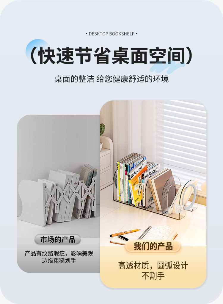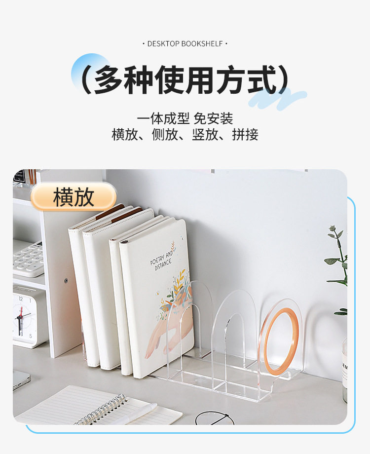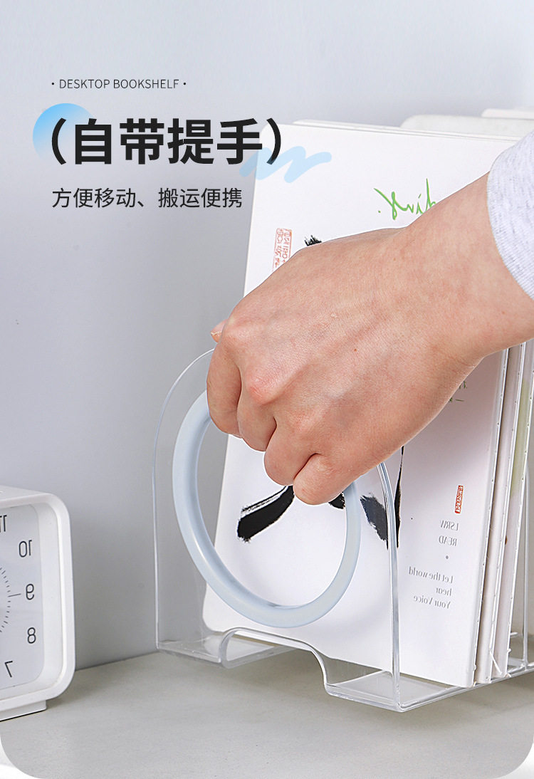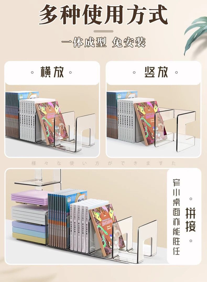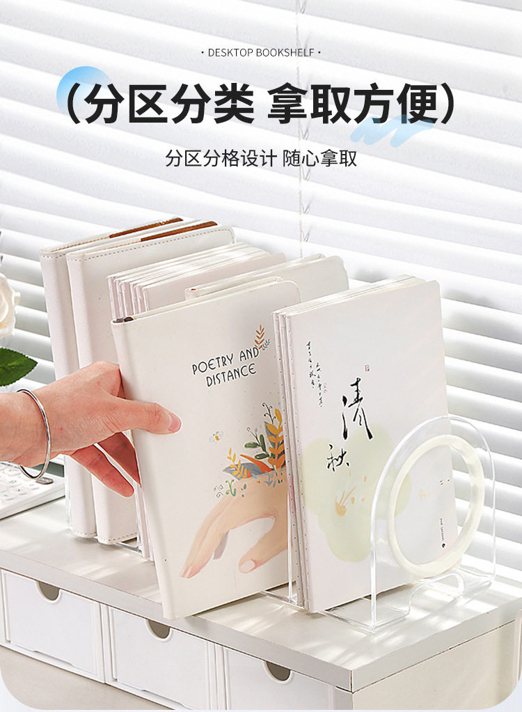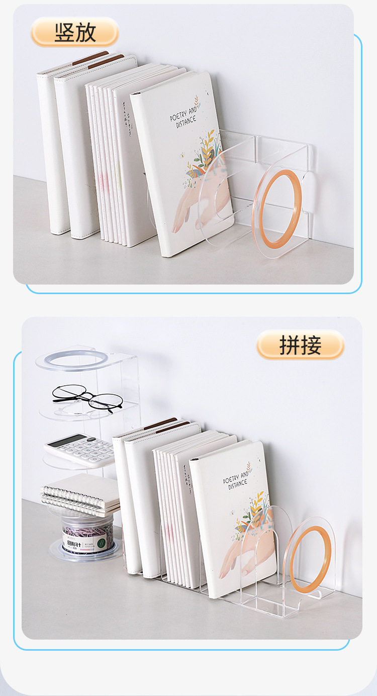 Desktop Bookend Plastic Bookshelf Transparent Acrylic Bezel Book Clip Stand Storage Book Display Rack