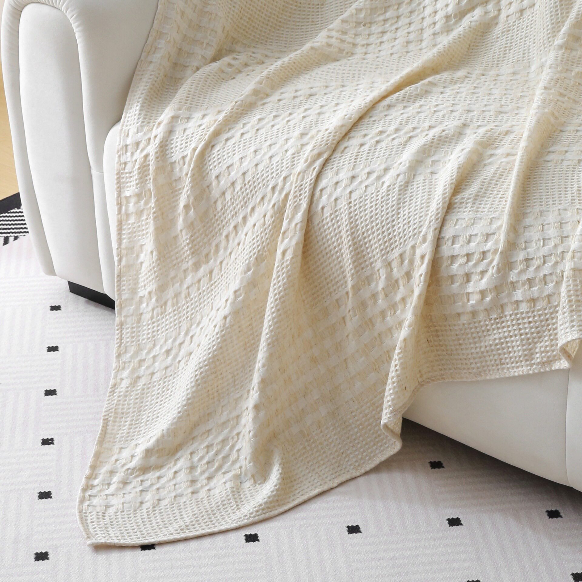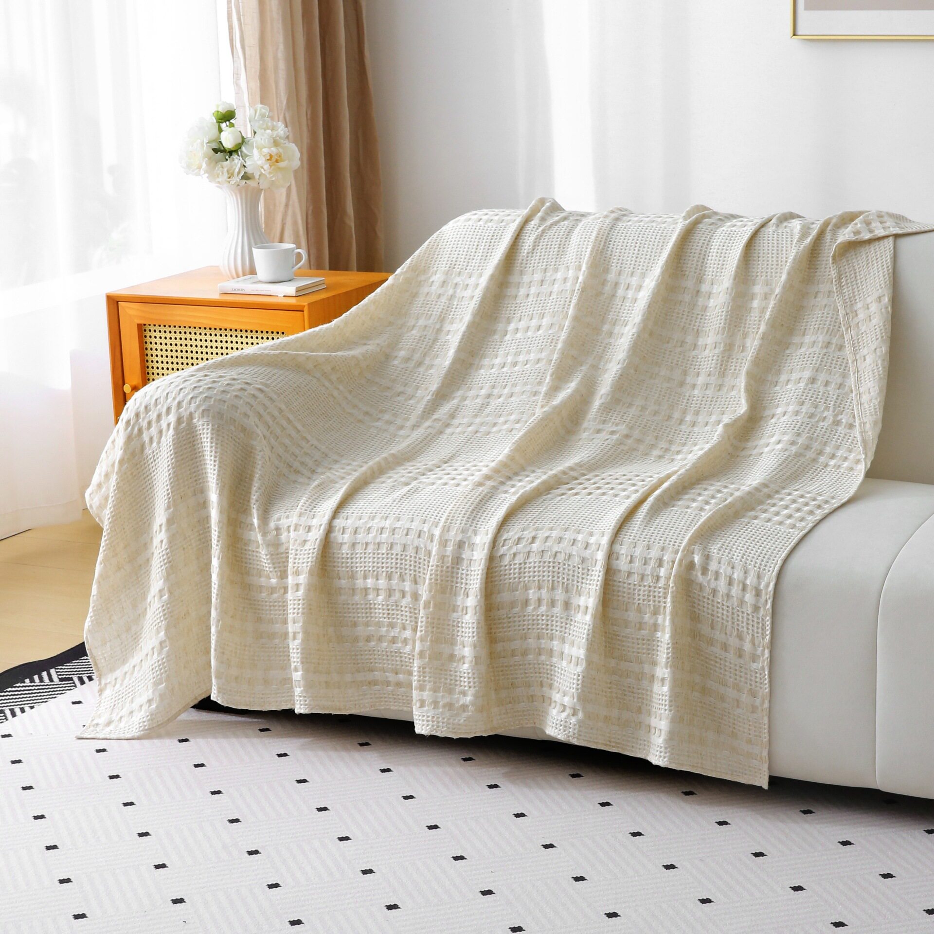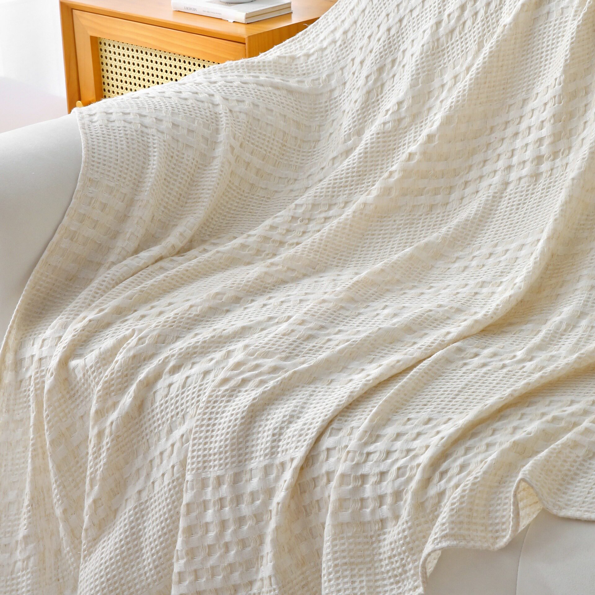 Yutaiyuan Tencel Hemp Waffle Blanket Air-Conditioning Blanket Comfortable and Breathable Sofa Blanket Antibacterial Bath Towel Skin-Friendly
