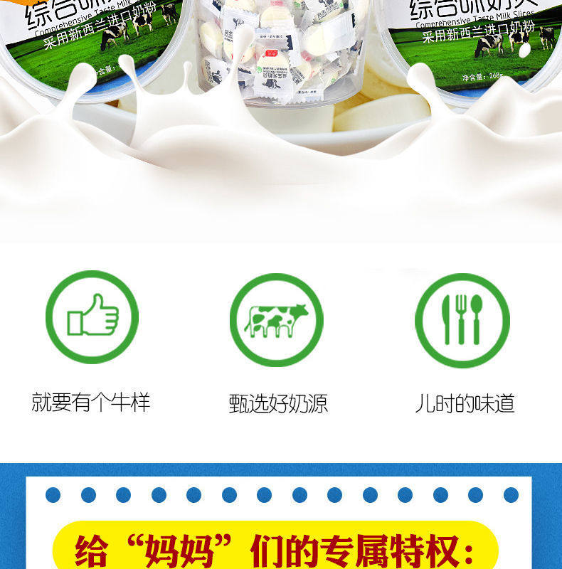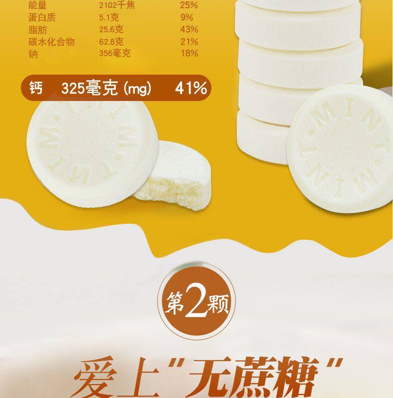 | Packaging specifications | 50g, about 24 pieces [mixed flavor tasting pack],180g bag of about 90 tablets [high calcium prebiotic + bovine colostrum],320g, about 160 pieces in bag [high calcium prebiotic + bovine colostrum],400g, about 200 pieces in bags [high calcium prebiotic milk shell],400g, about 200 pieces in bags [high calcium colostrum milk shell],400g, about 200 pieces in bags [high calcium prebiotic + bovine colostrum],800g, about 400 pieces in bags [high calcium prebiotic milk shell],800g, about 400 pieces in bags [high calcium colostrum milk shell],800g, about 400 tablets in bag [high calcium prebiotic + bovine colostrum] |