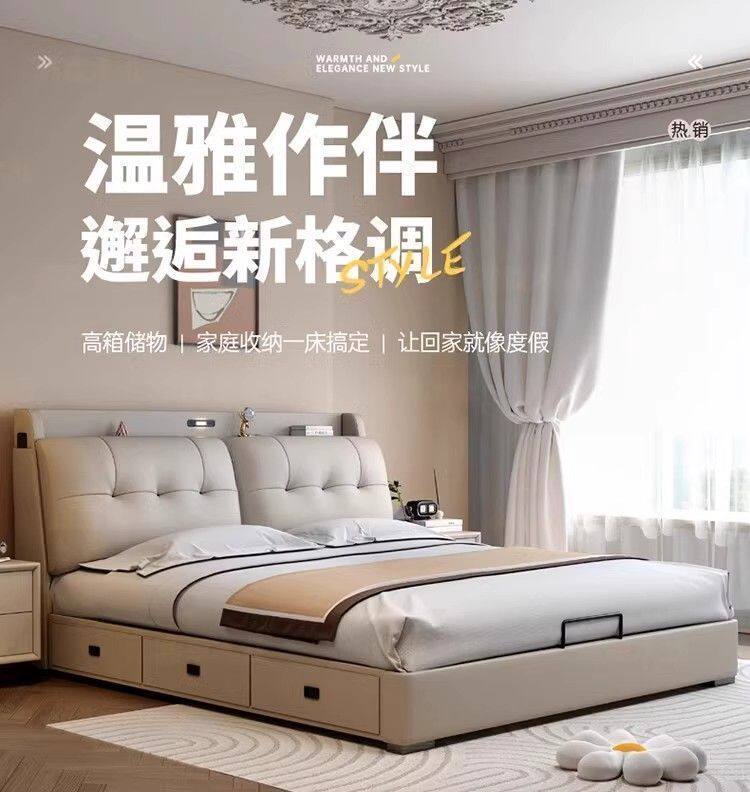 Modern Simple Home Double Master Bedroom Large Bed with Drawers Multi-Functional Soft Bag Storage Double Bed Wedding Bed Italian Wood