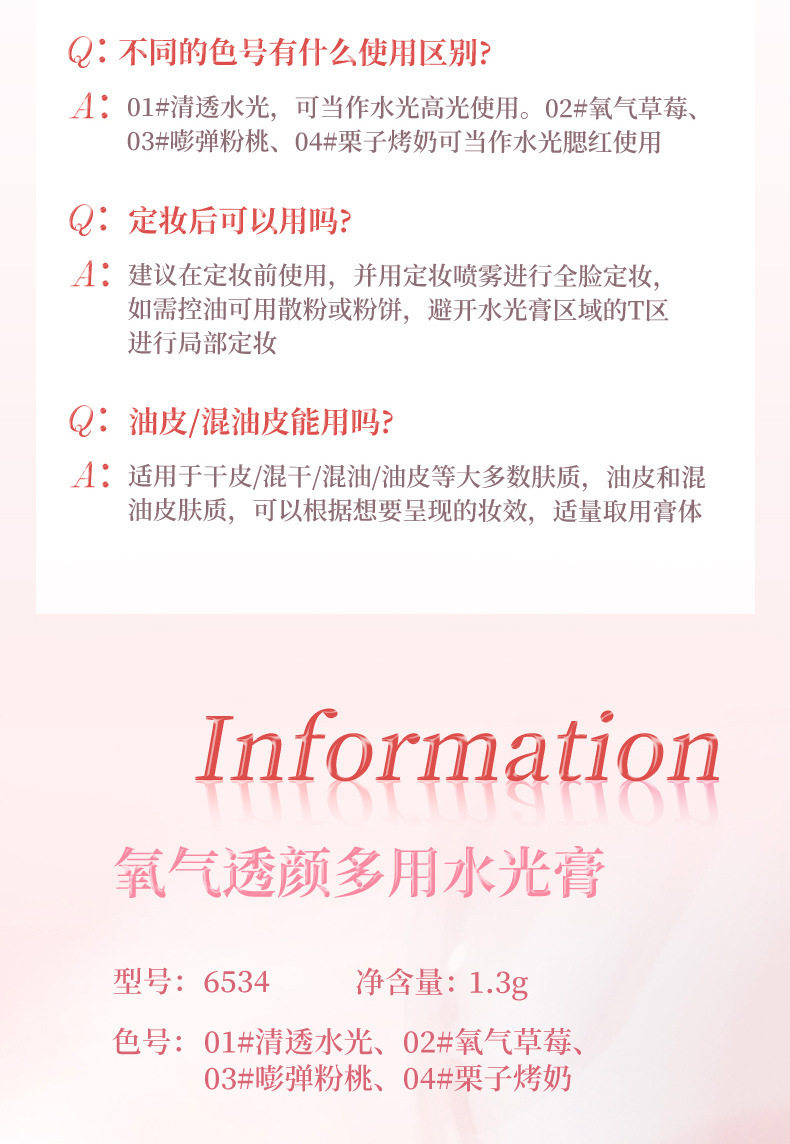 | Product name | Oxygen translucent multi-purpose hydrating cream |