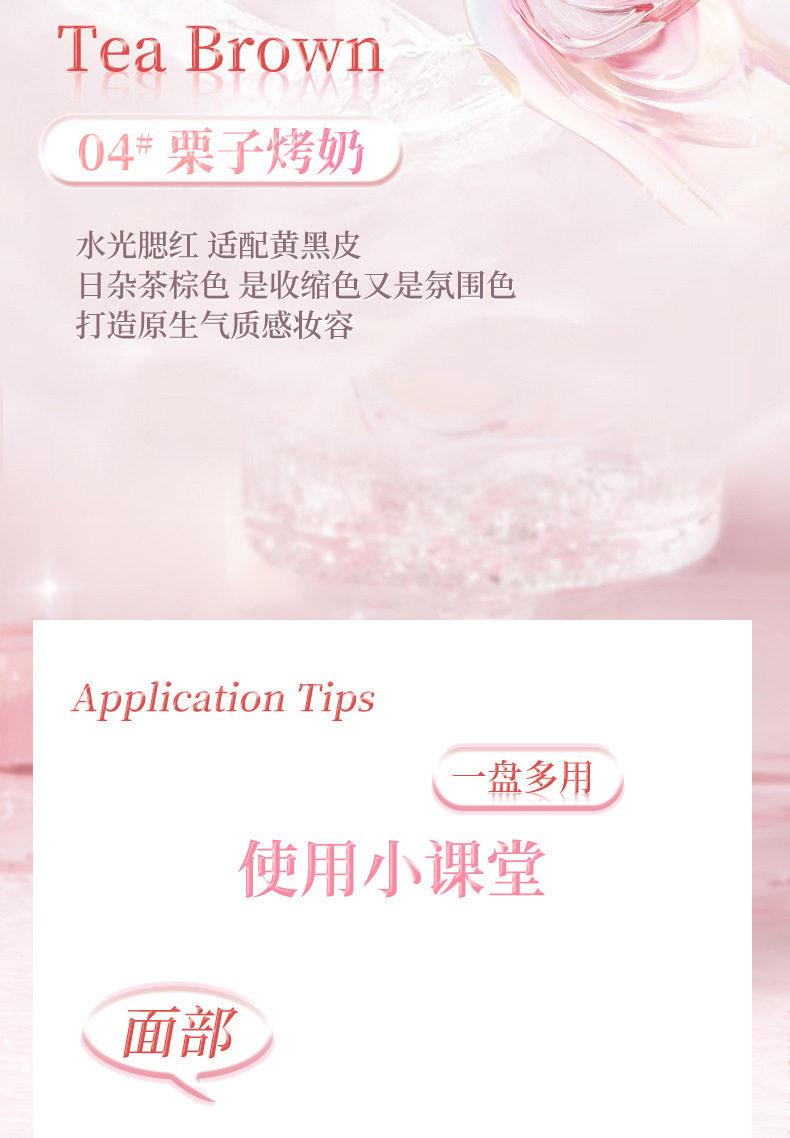 | Color Category | 1 # Clear and watery light,2 # Oxygen strawberry,3 # Boom bomb pink peach,4 # Chestnut roasted milk |