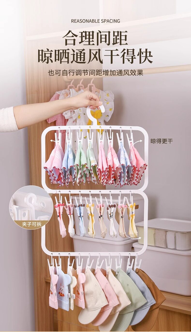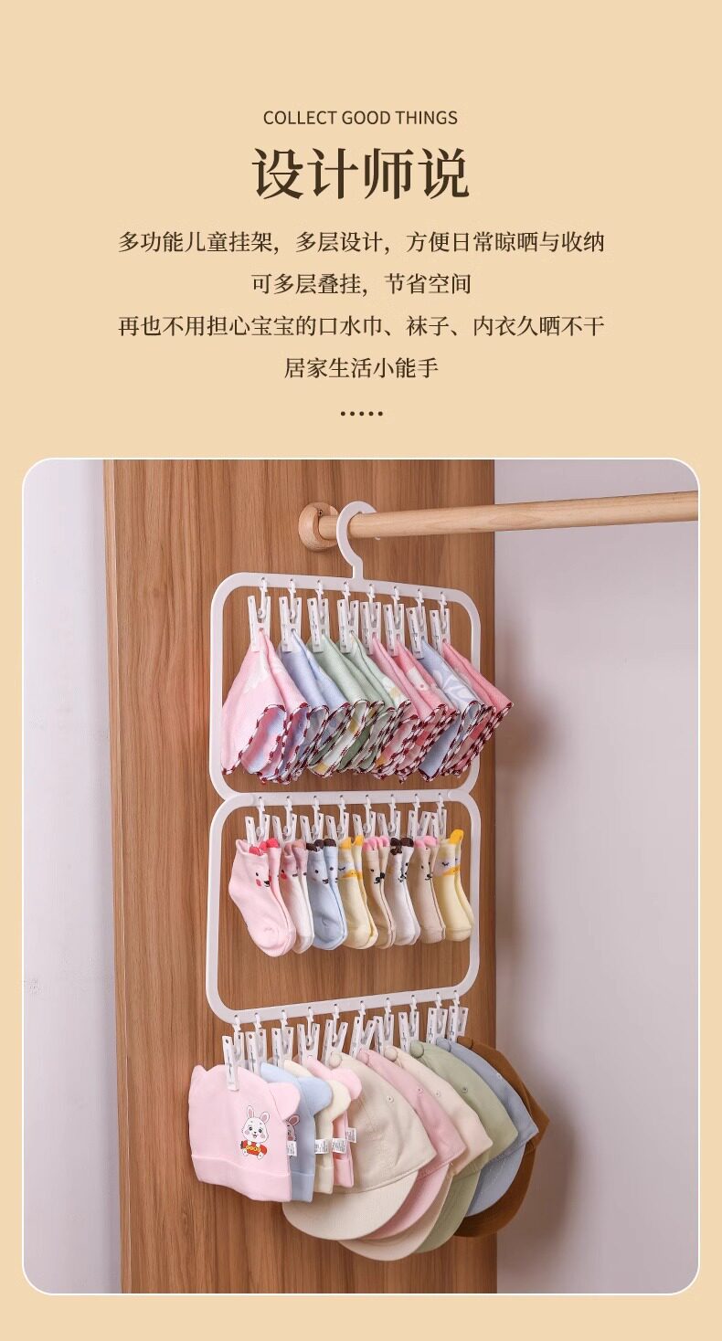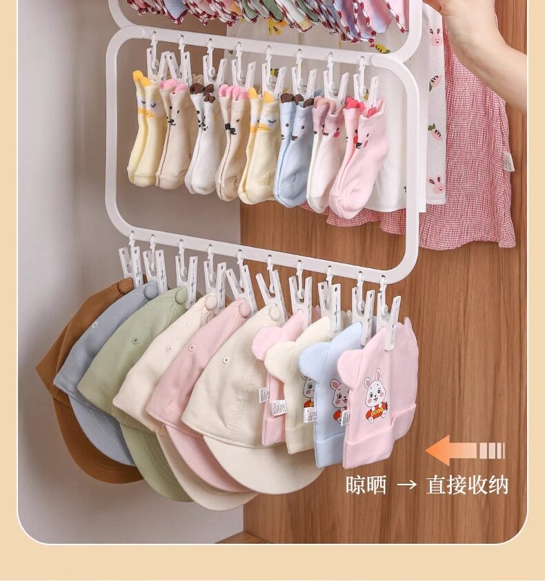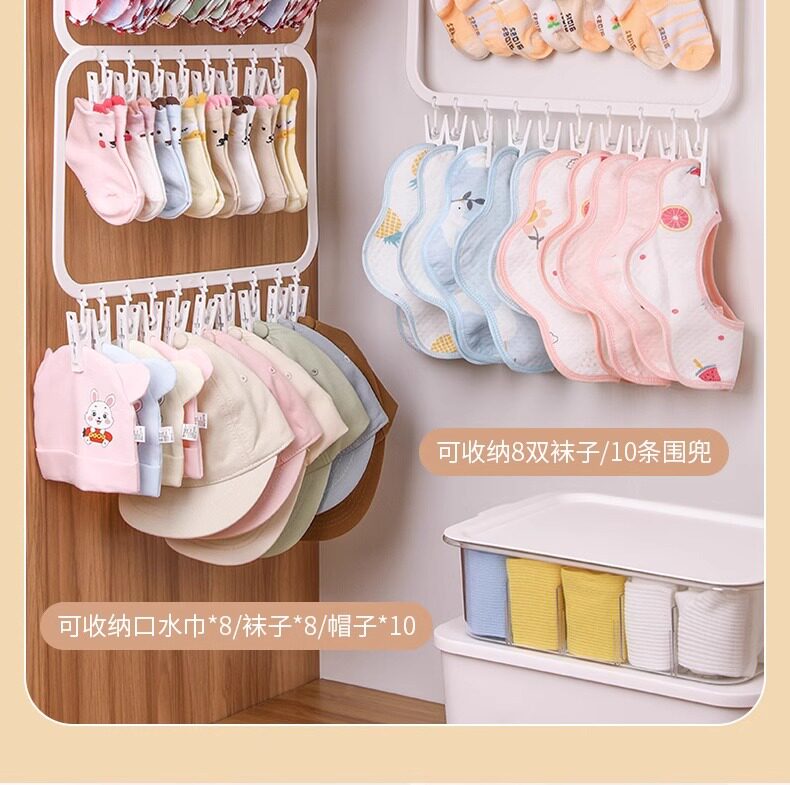 Baby Wardrobe Storage Multi-Clip Kidsren's Saliva Towel Socks Drying Rack Multi-Functional Clothes Rack Hook