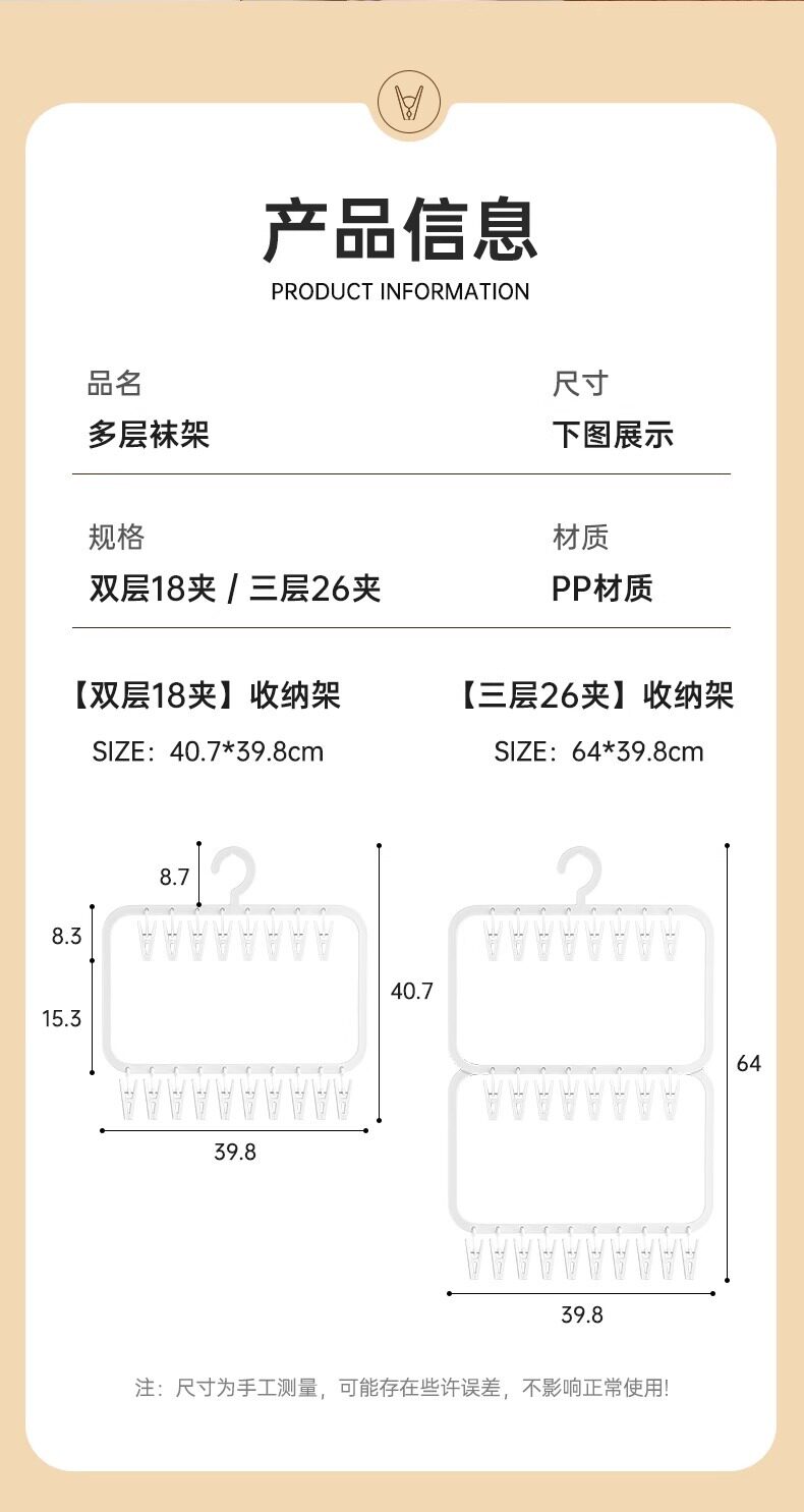 | Specification | Double layer 18 clips, three layer 26 clips |