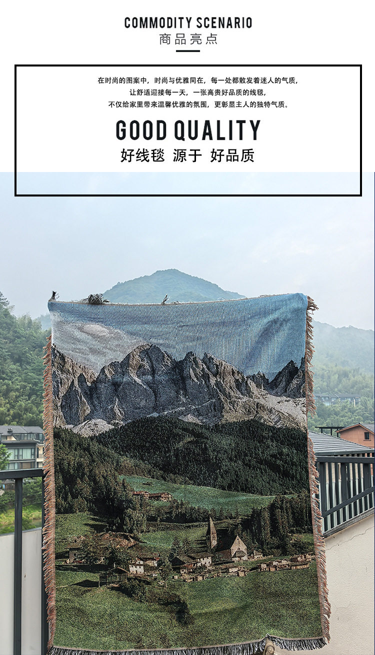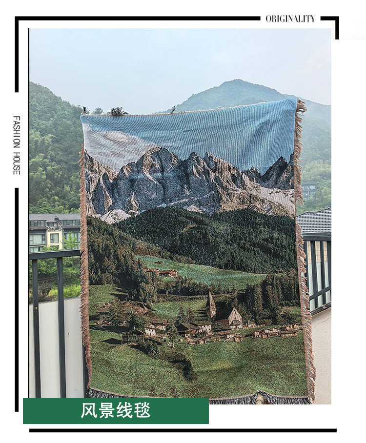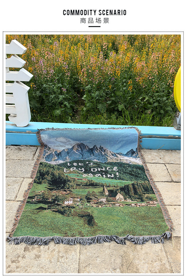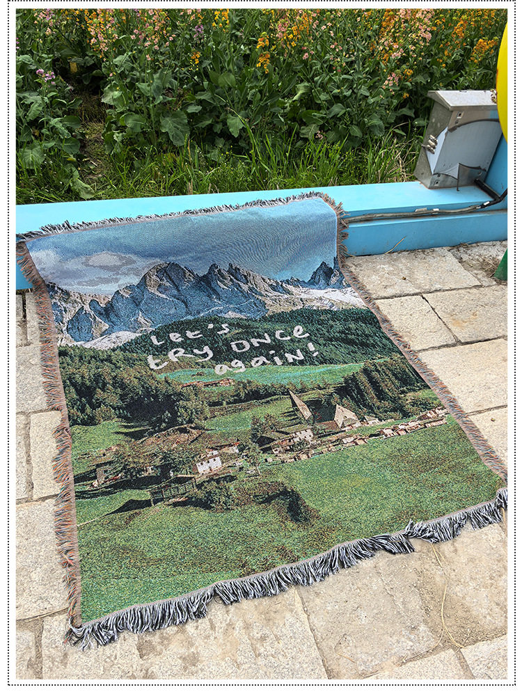 Nordic Aesthetic Healing Landscape Sofa Cover Ins Style Internet Celebrity Camping Blanket Multifunctional Rug Picnic Blanket