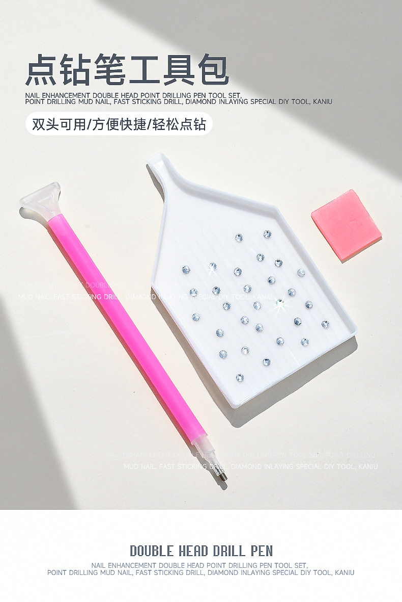 Nail Art Tool Set with Rhinestone Pen, Rhinestone Tray, Glue Clay, Double-Ended Rhinestone Stickers, Diamond Painting, Handmade DIY Rhinestone Tray, 9 Rhinestone Pens