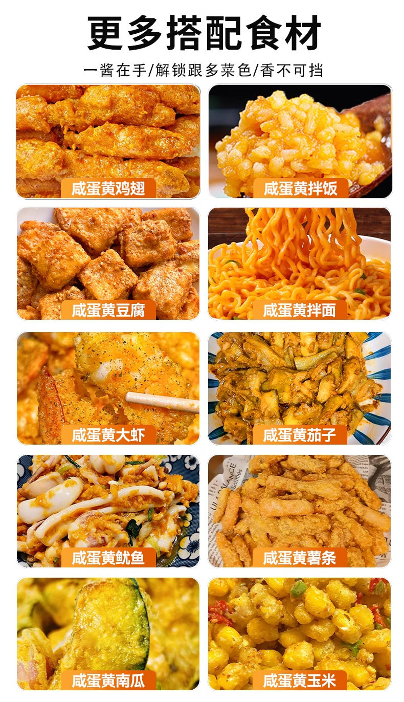 | Specification | Salted egg yolk sauce 200g*1 bottle,Salted egg yolk sauce 200g*buy one get one free, 2 bottles,Salted egg yolk sauce 200g*3 bottles |