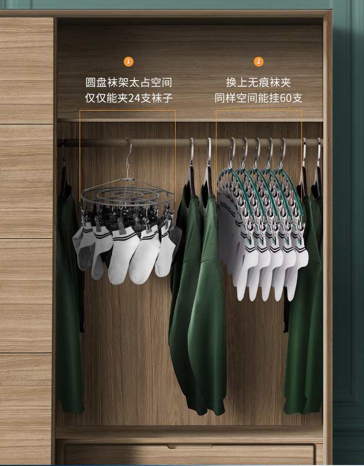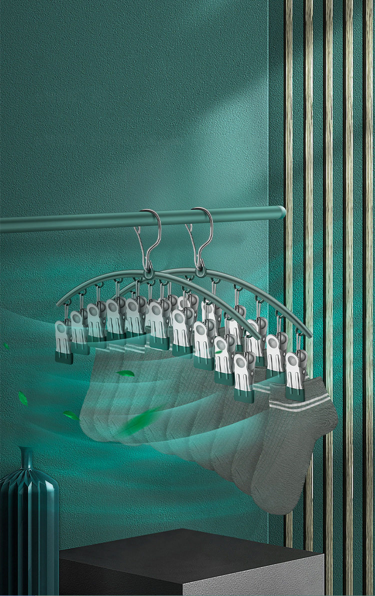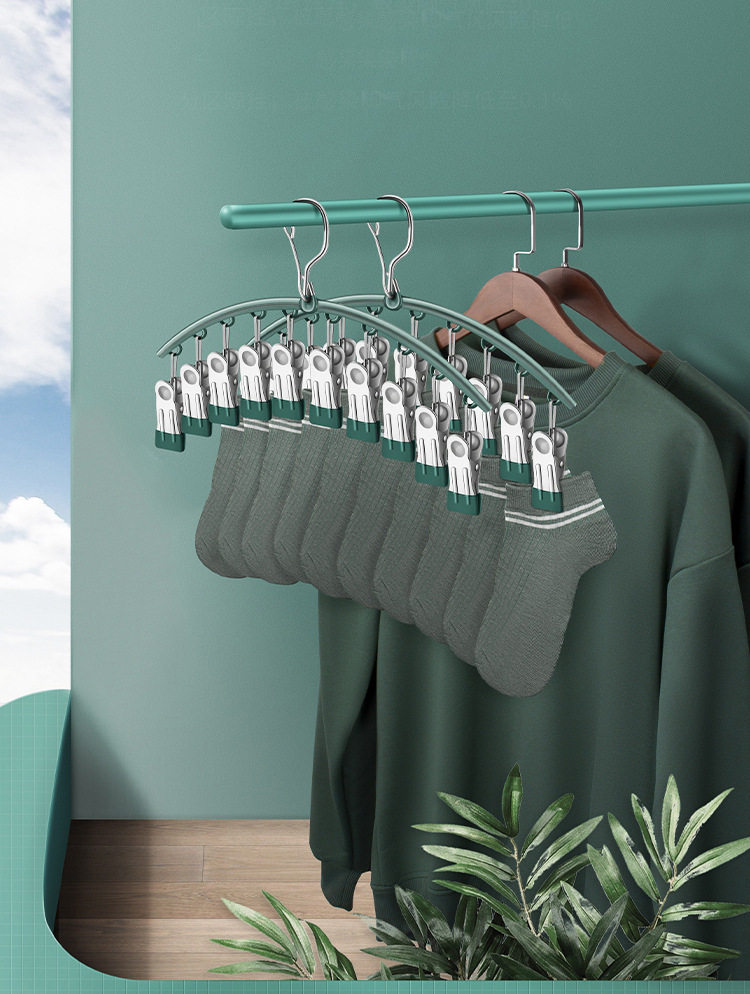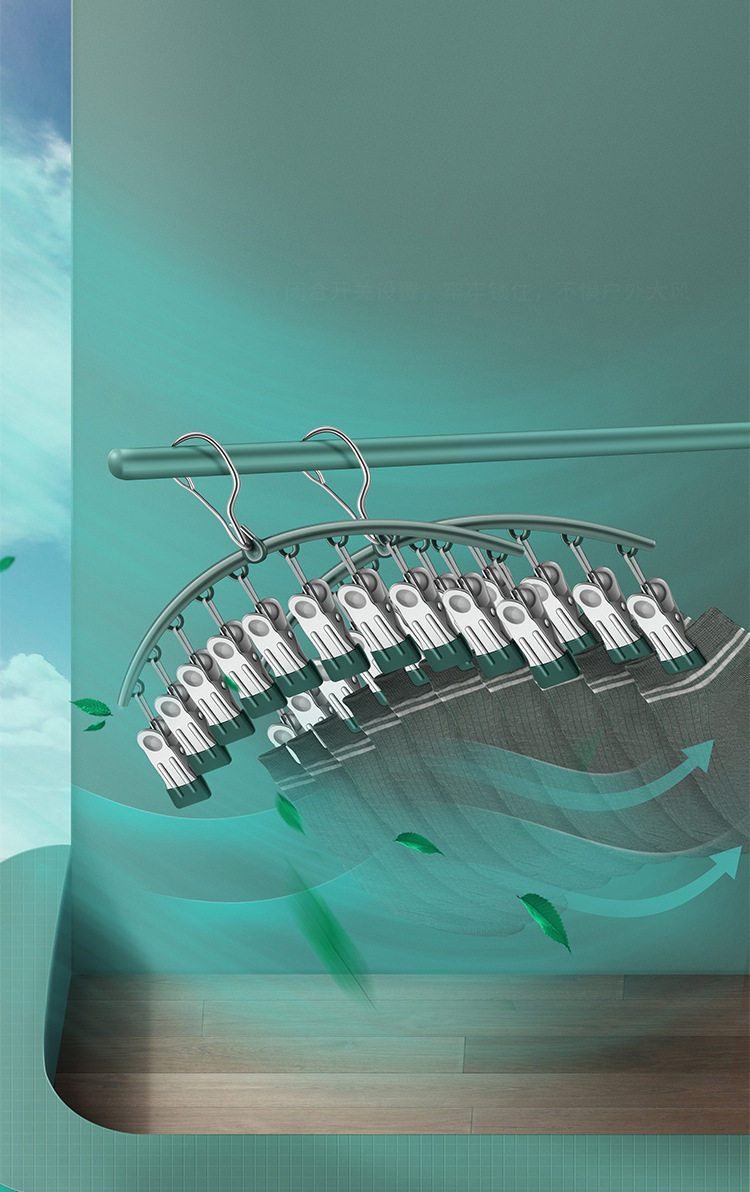 Household Balcony 10-Clip Clothes Hanger Stainless Steel Clothes Hanger Underwear Socks Curved Multi-Head Windproof Clip Kidsren's Clothes Drying Hanger