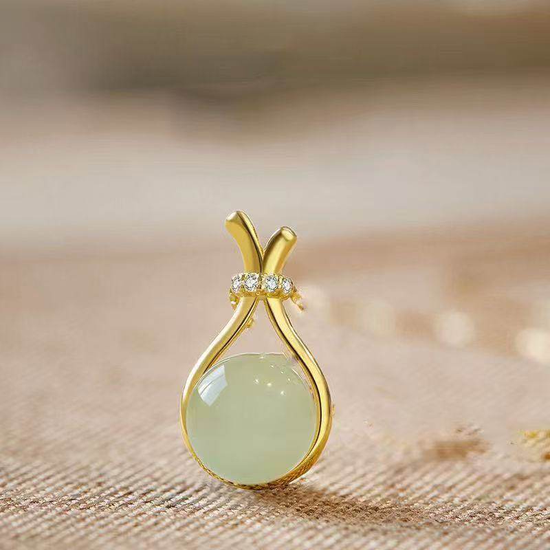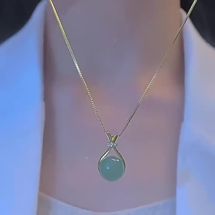 New Light Luxury Style Imitation Hetian Jade Lucky Bag Necklace for Women, Fashionable, Simple, Elegant, High-End, Niche Design, Versatile