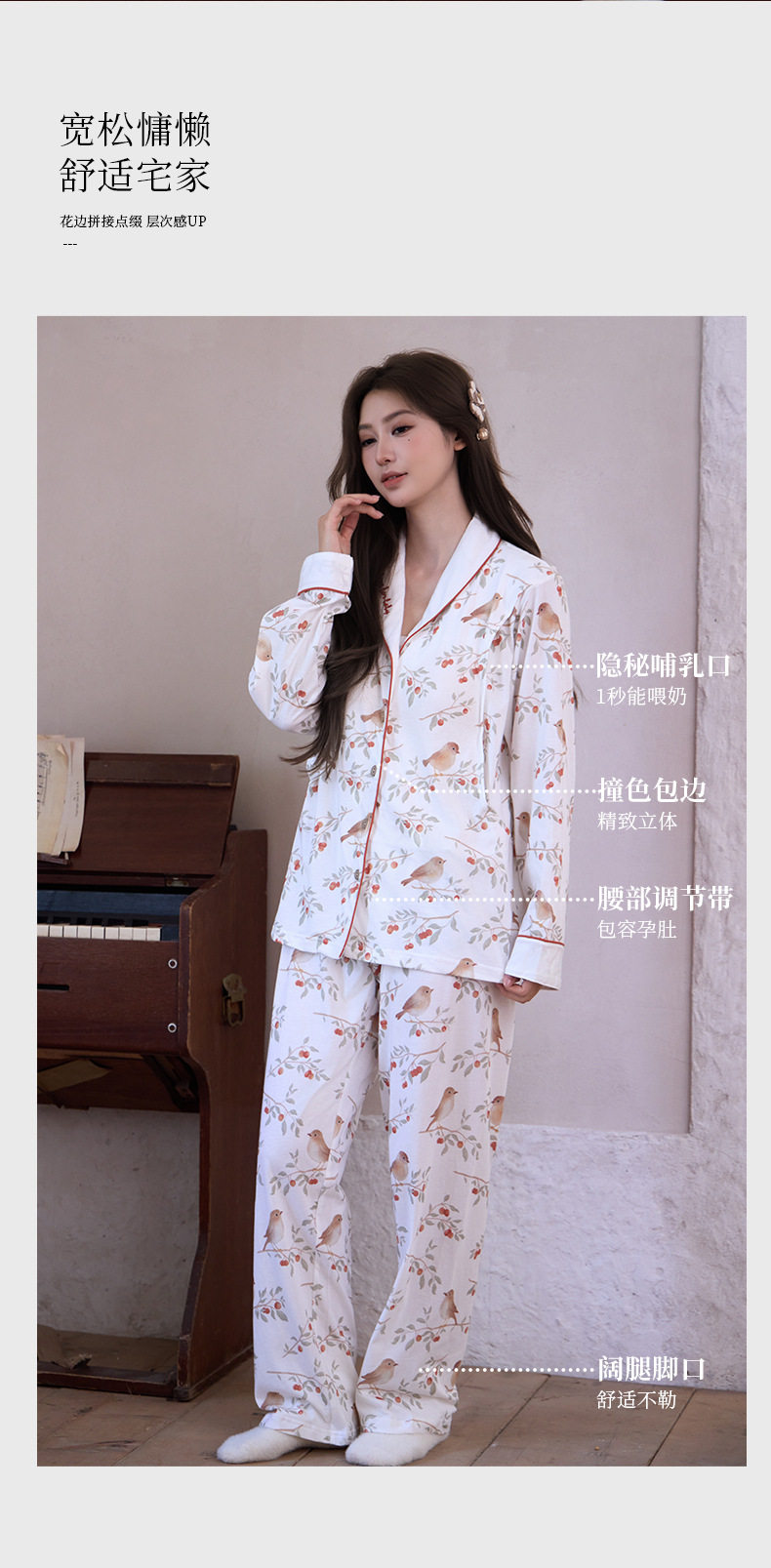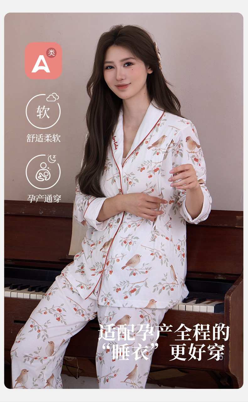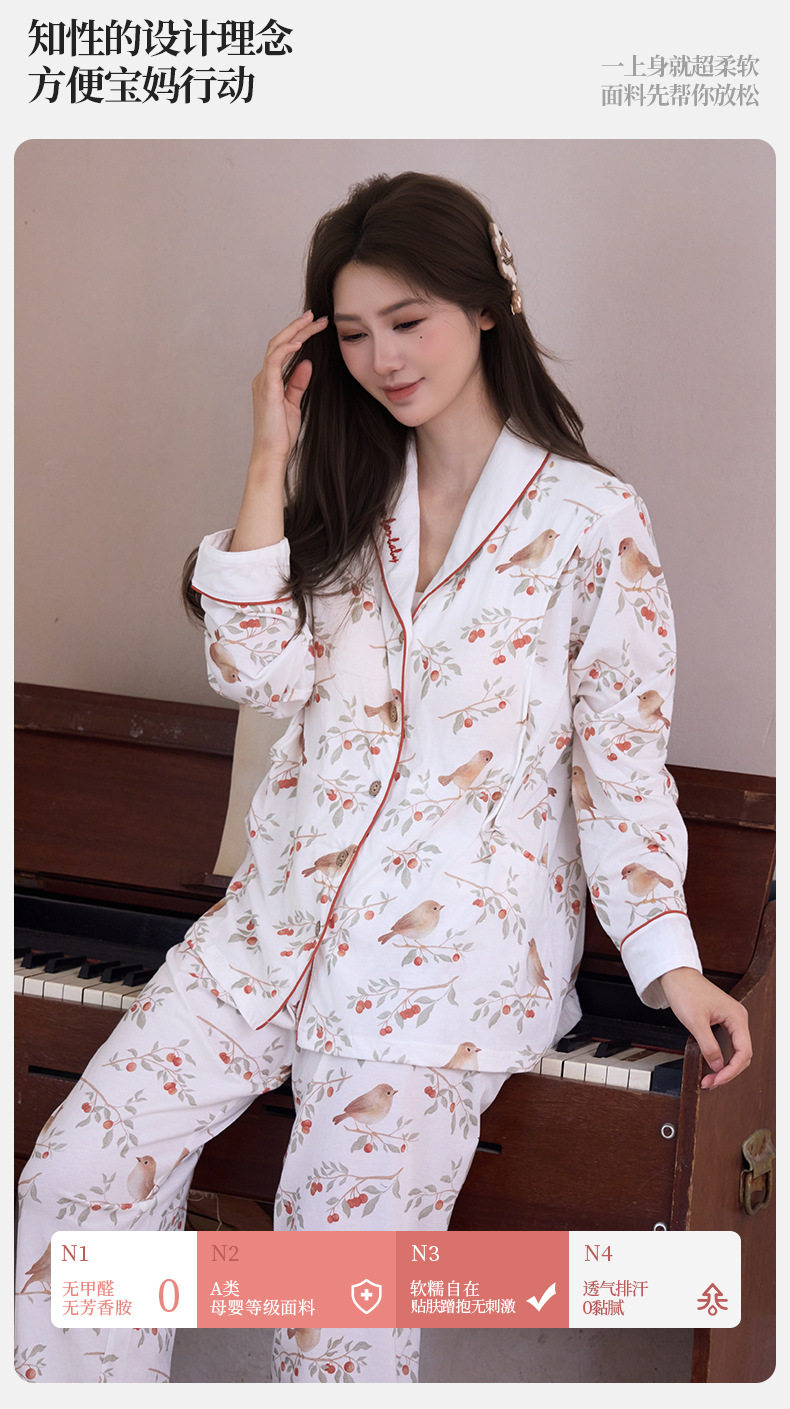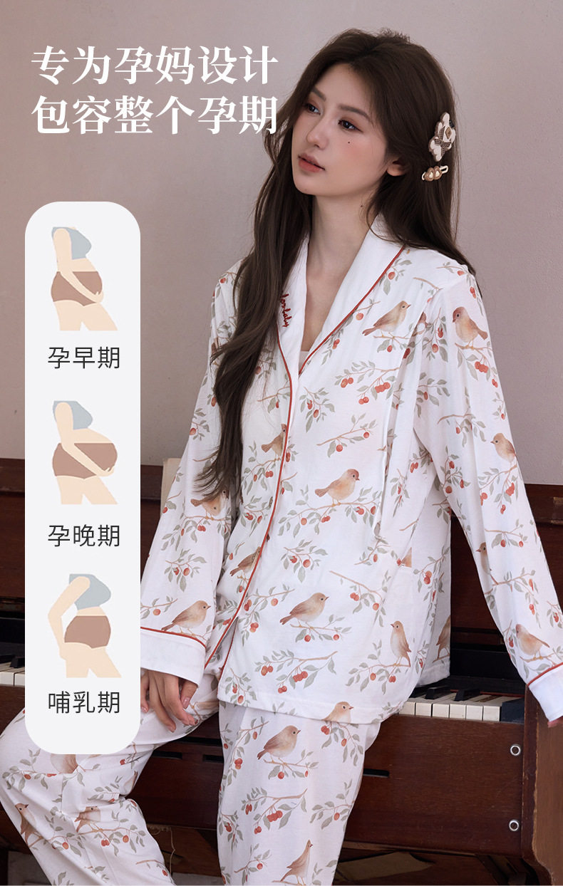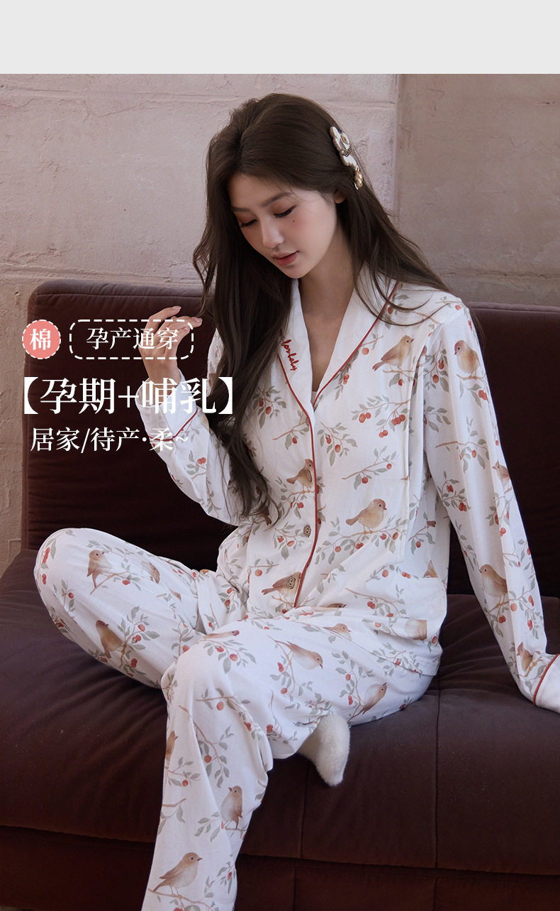 Pure Cotton Jersey Confinement Clothes 2025 Autum New Pastoral Style Cute Pregnant Women Adjustable Home Nursing Clothes
