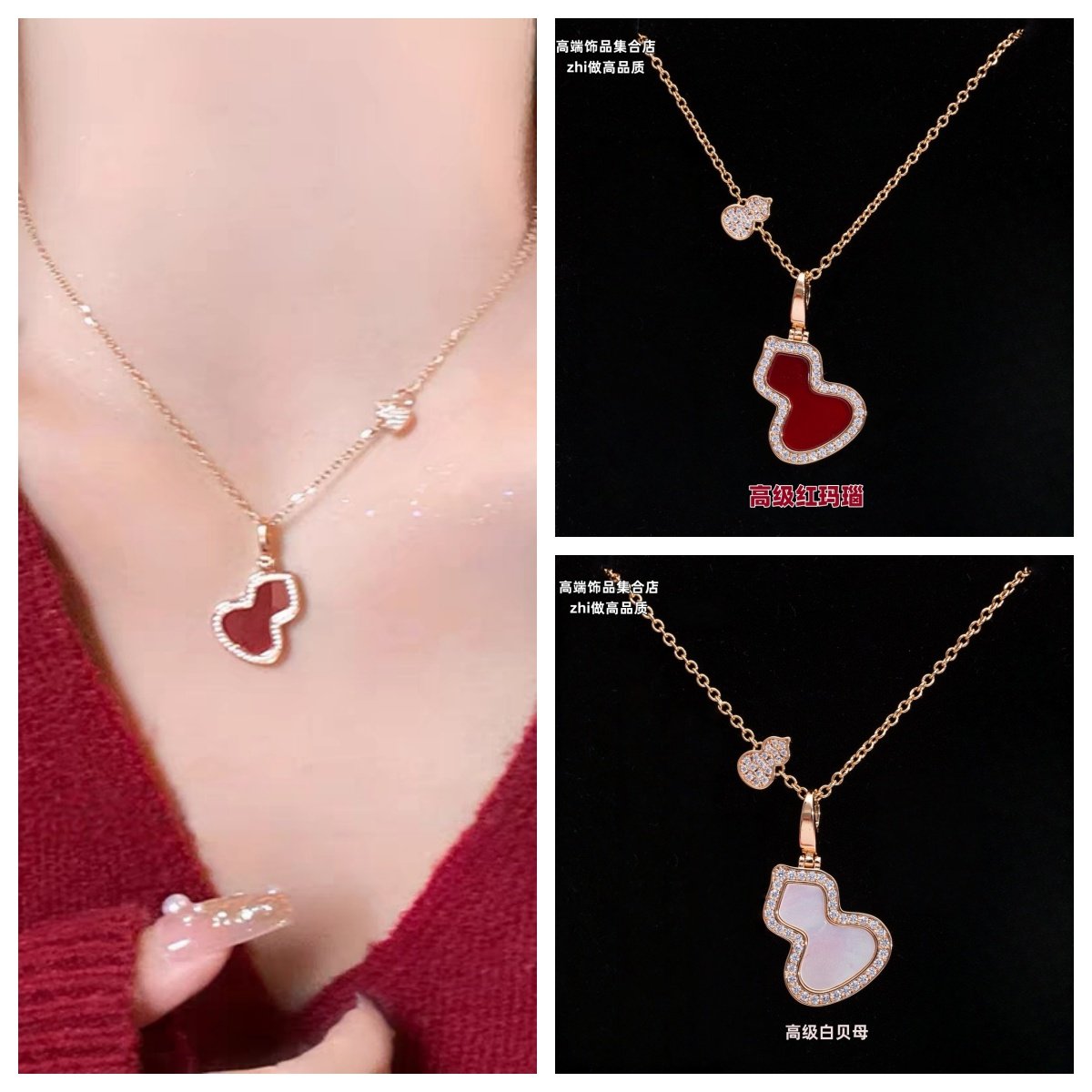 Kirin Gourd Necklace V Gold Plated 18K Rose Gold Red Agate White Mother-Of-Pearl Diamond-Studded Pendant Collarbone Slimming Chain