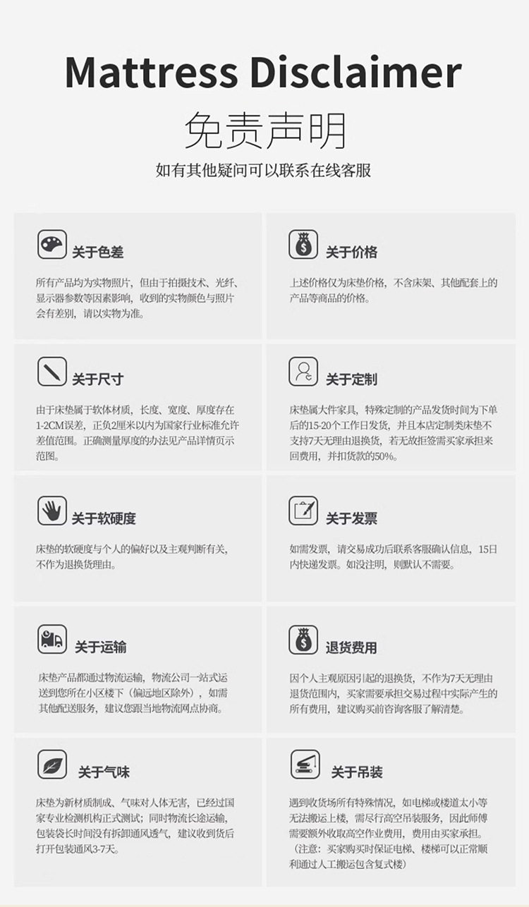 | Color | Type a: spine protection fit [harder/23cm thick],Type b: apartment and b&b [softer package/23cm thick],Type c: luxurious master bedroom [soft and hard use/25cm thick],Type d: five-star suite [q bomb package/26cm thick],Type e: presidential suite [super soft package/30cm thick] |