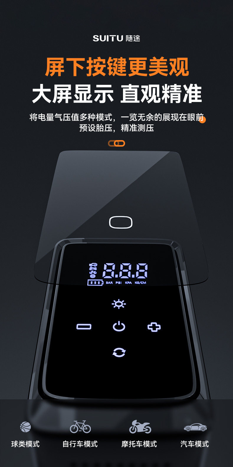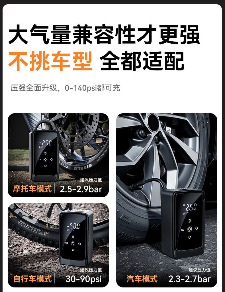 | Additional features | Lighting,Tire pressure gauge,Warning light,Usb charging |