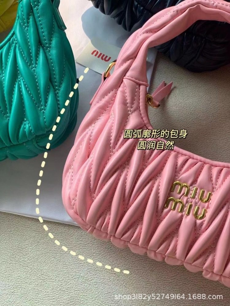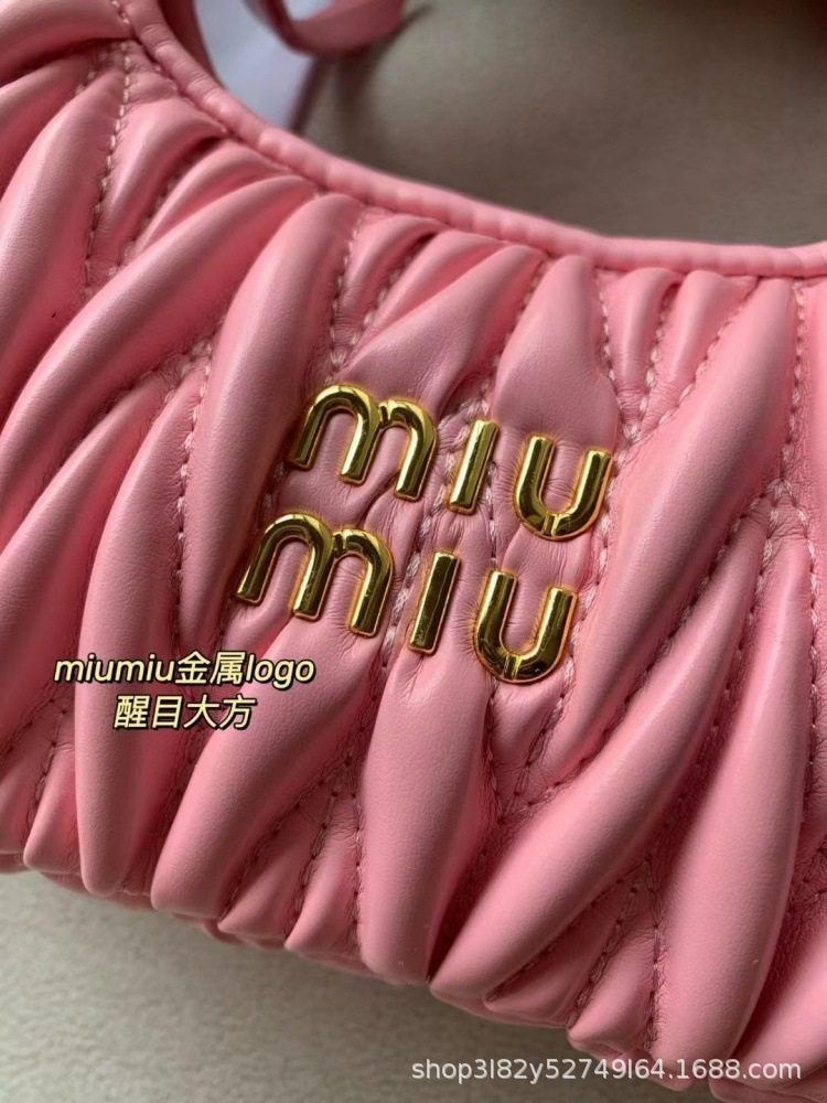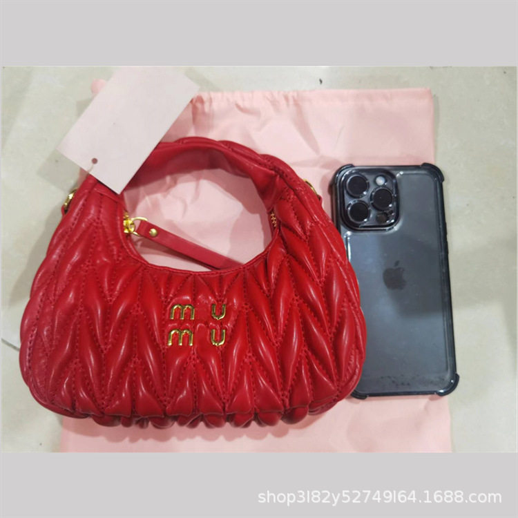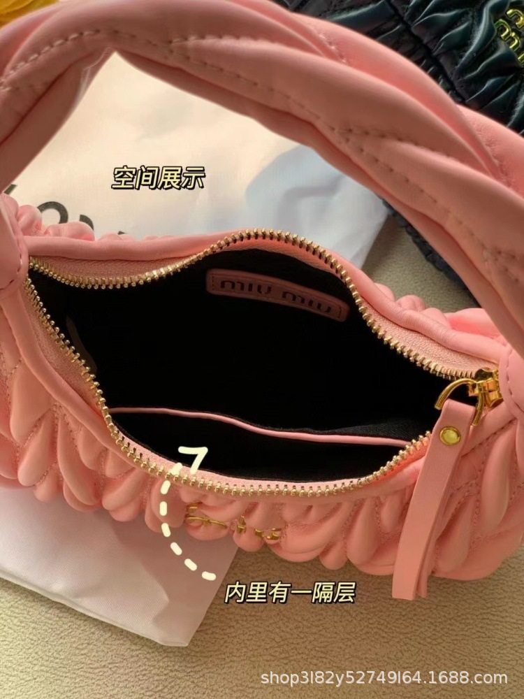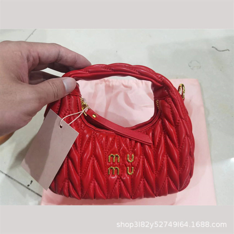 Miu's Dumpling Bag Lambskin Pleated Bag Hobo Armpit Cloud Bag Crescent Moon Shoulder Crossbody Women's Bag Handbag