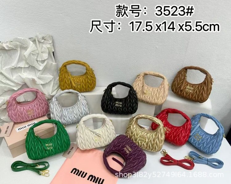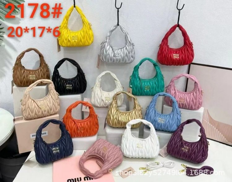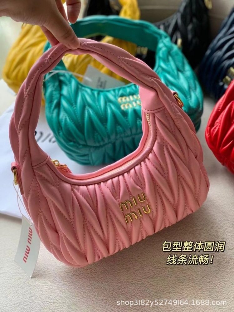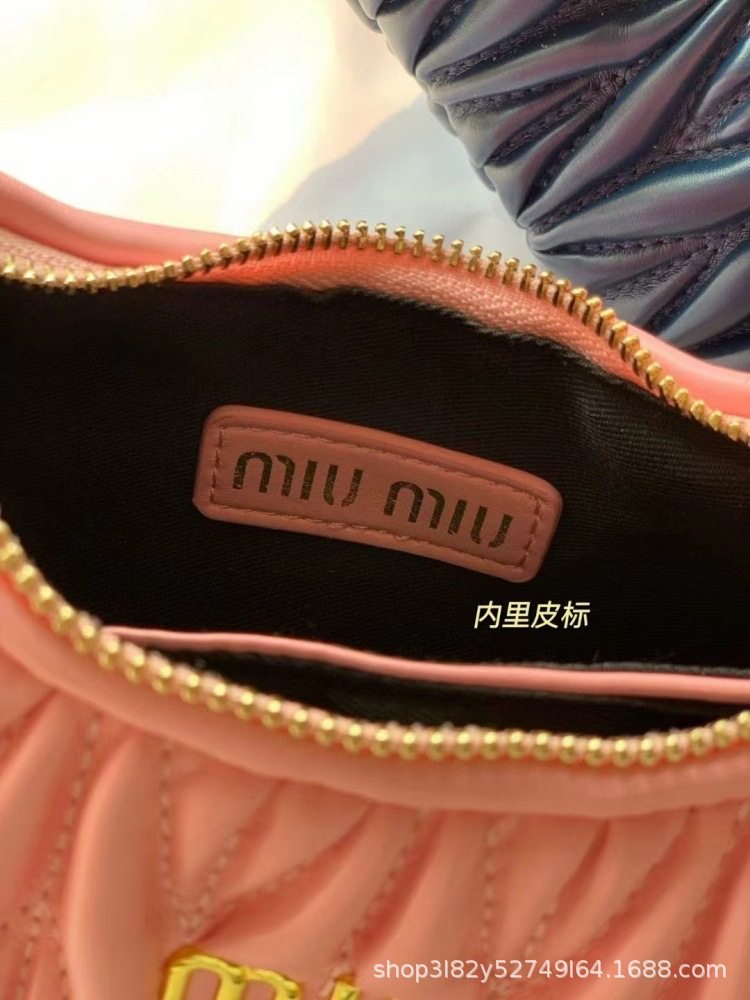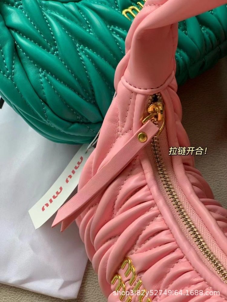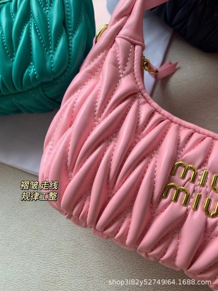 Miu's Dumpling Bag Lambskin Pleated Bag Hobo Armpit Cloud Bag Crescent Moon Shoulder Crossbody Women's Bag Handbag