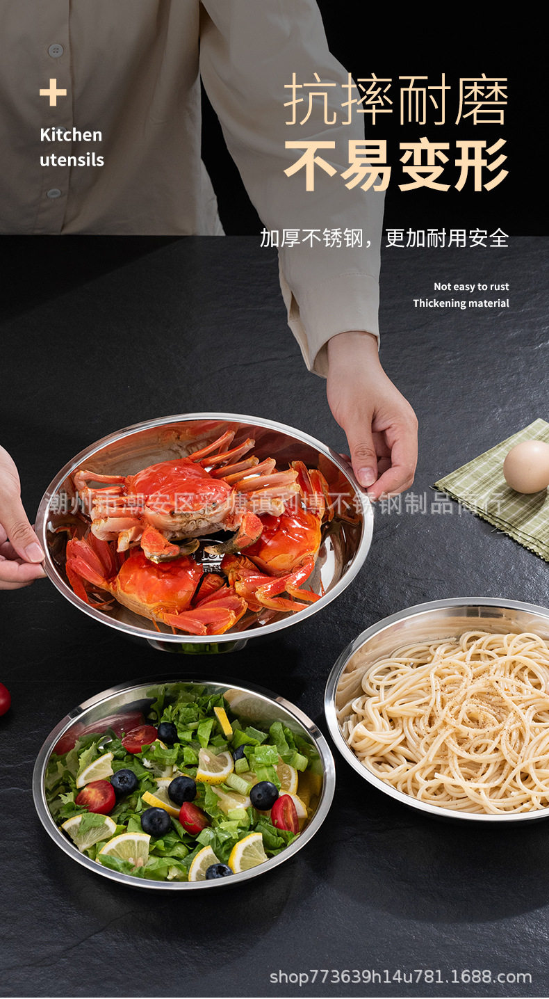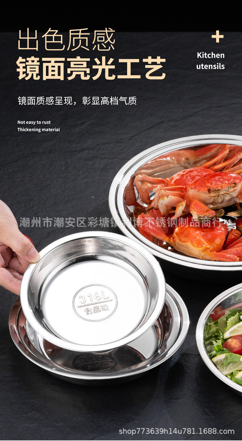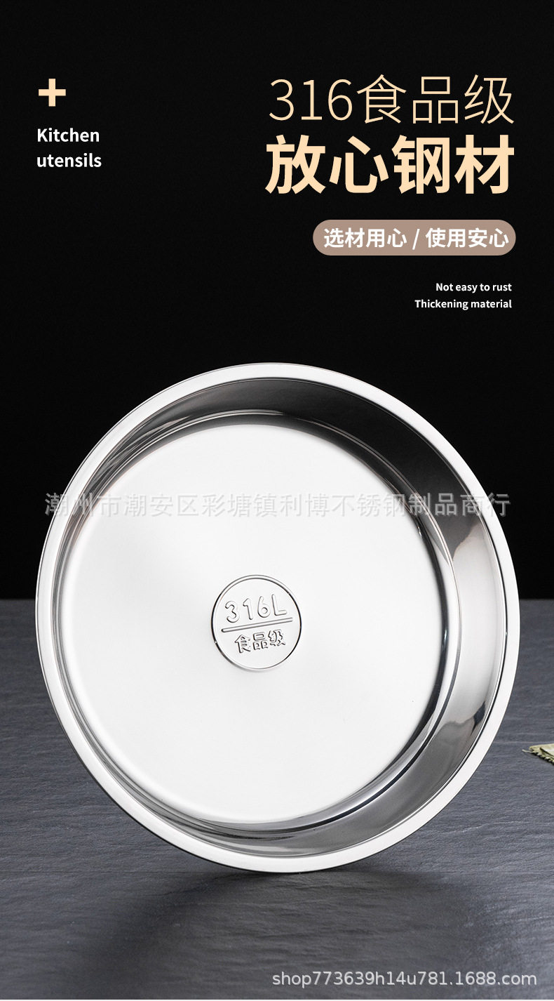 316 Food Grade Stainless Steel Large Round Plate Household Shallow Plate Steaming Plate Round Tray Iron Plate Dish Plate Breakfast Plate