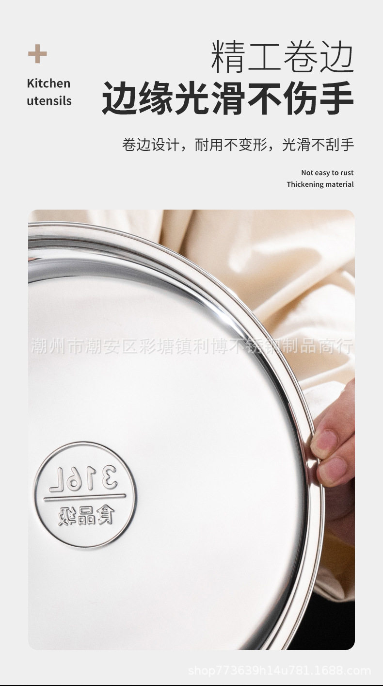 | Color | 316l stainless steel-extra thick disc,304 stainless steel-thickened disc,201 stainless steel-thick disc |