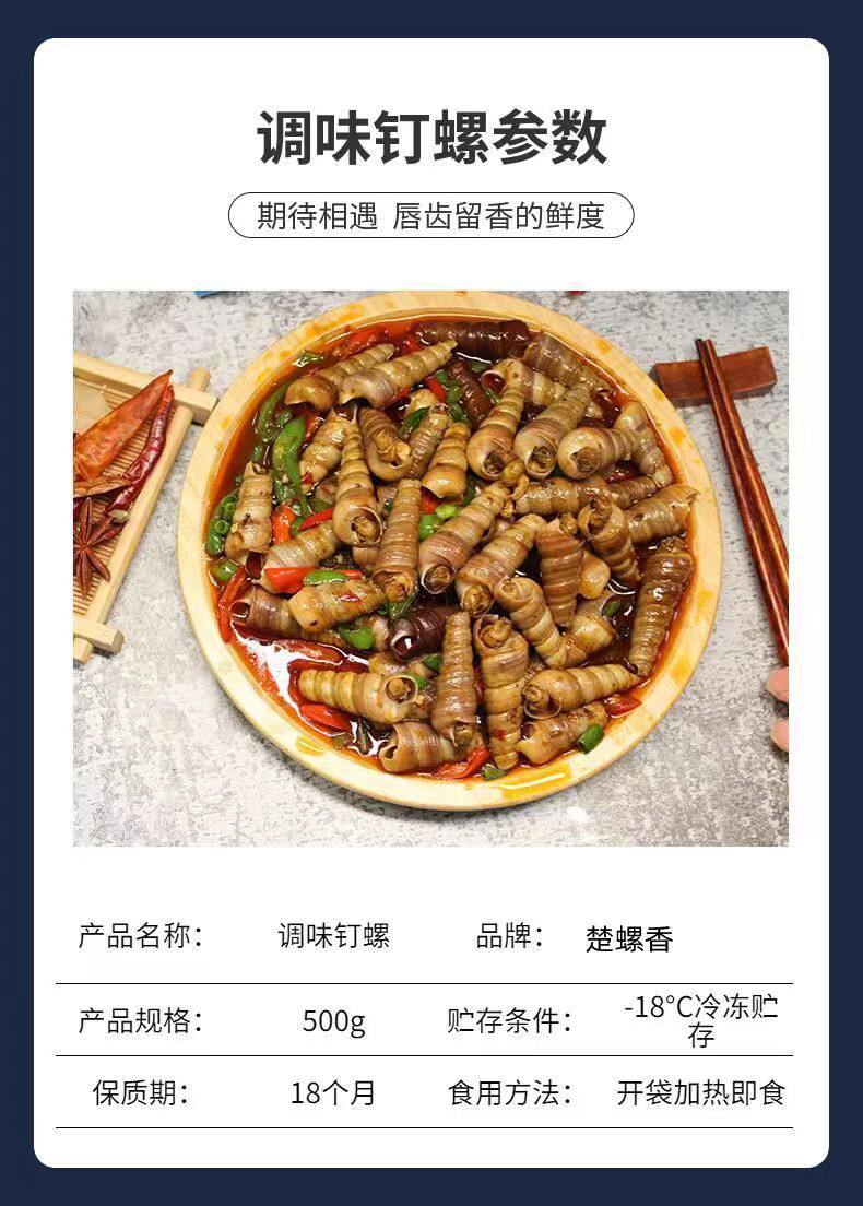 | Packaging specifications | Seasoned snails 500g bag,Two bags of 500g seasoned snails,Three bags of 500g seasoned snails,Four bags of 500g seasoned snails |