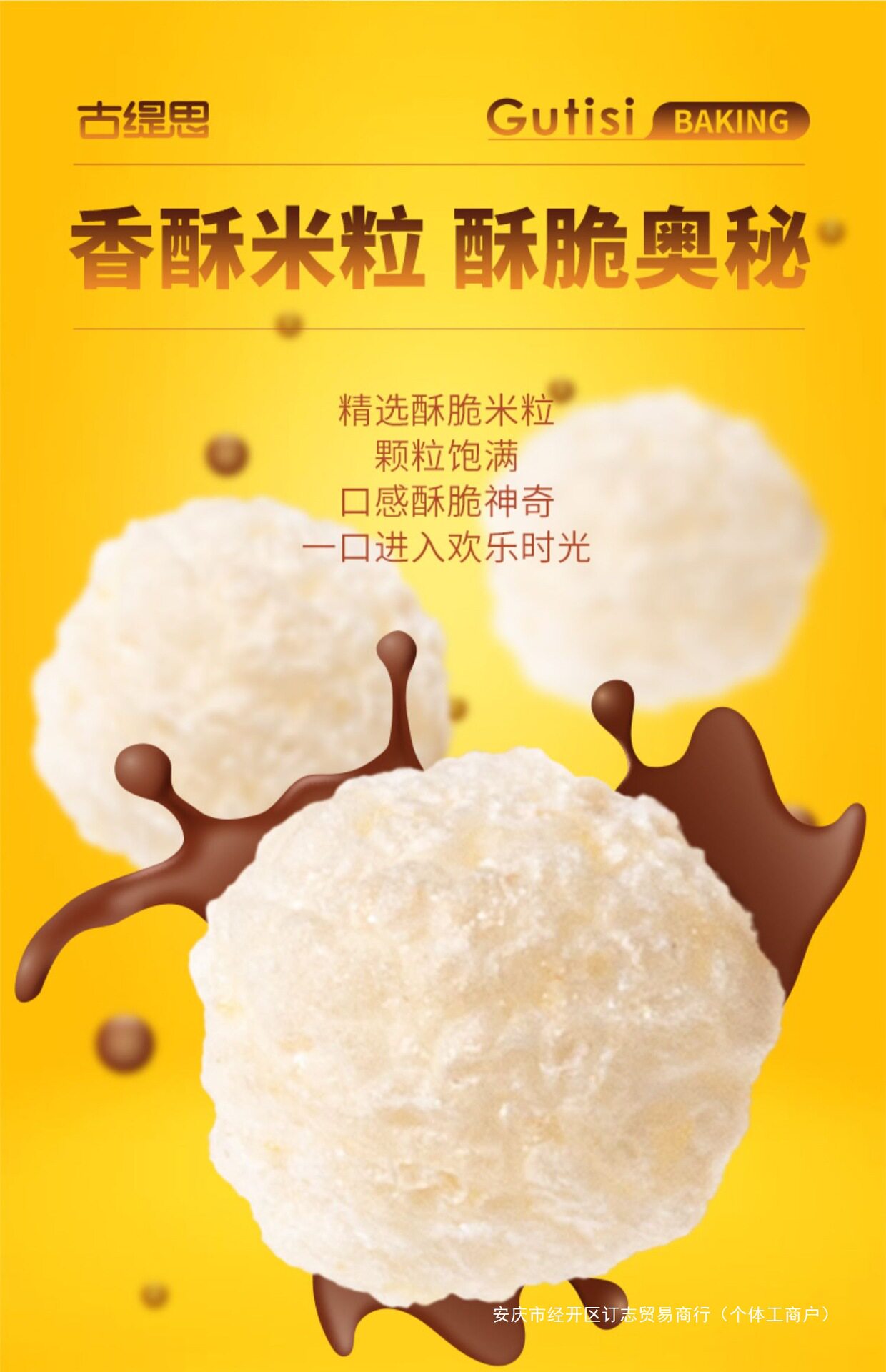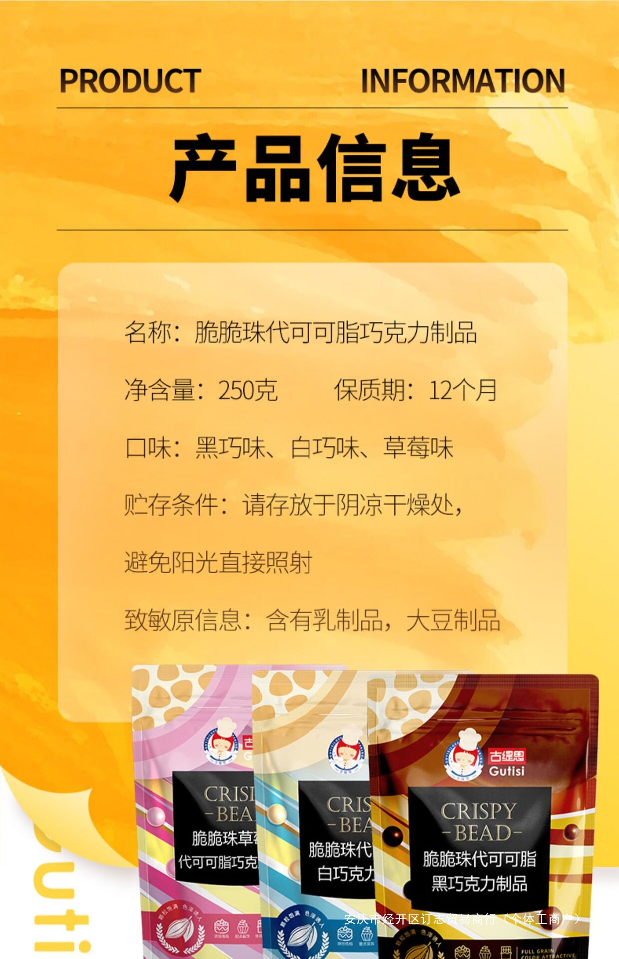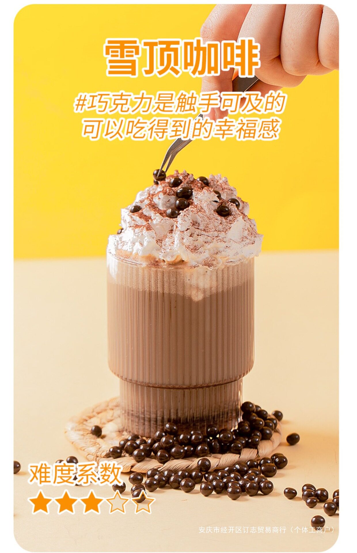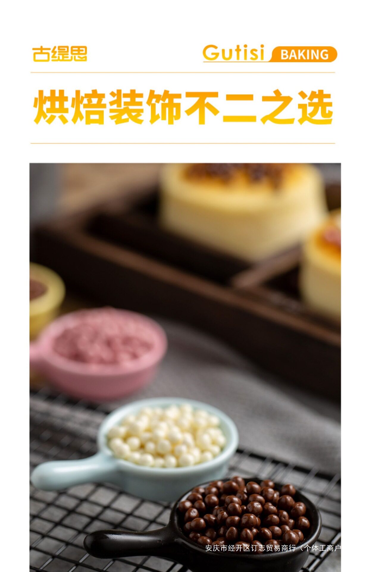 | Packaging specifications | Black pearl rice krispie chocolate 250g,White pearl rice krispie chocolate 250g,Strawberry flavored rice crispy chocolate 250g,4mm black pearl rice crispy chocolate 250g,Black pearl rice krispie chocolate 250g*2,White pearl rice krispie chocolate 250g*2,Dark chocolate crispy beads 250g + strawberry flavored chocolate crispy beads 250g,Strawberry flavored chocolate crisp beads 250g + white chocolate crisp beads 250g,Popping candy dark chocolate 200g,Cranberry flavored chocolate 250g (red),Popping candy dark chocolate 200g*2 bags,Cranberry flavored chocolate 250g (red)*2 bags,Dark chocolate crispy beads 250g + white chocolate crispy beads 250g |