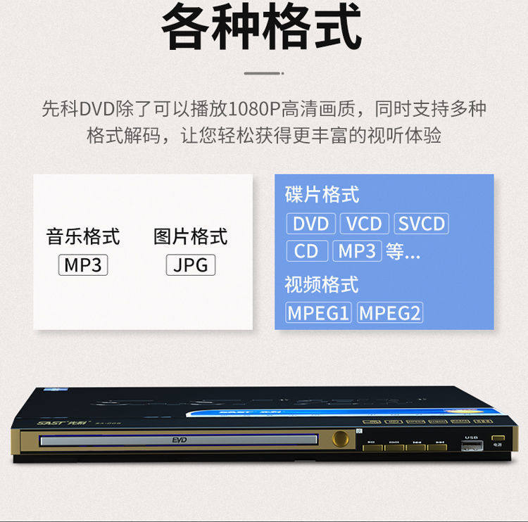 Dvd Player New Disc Player Cd Player Vcd High-Definition Multi-Function Player All-In-One Machine Factory Direct Sale
