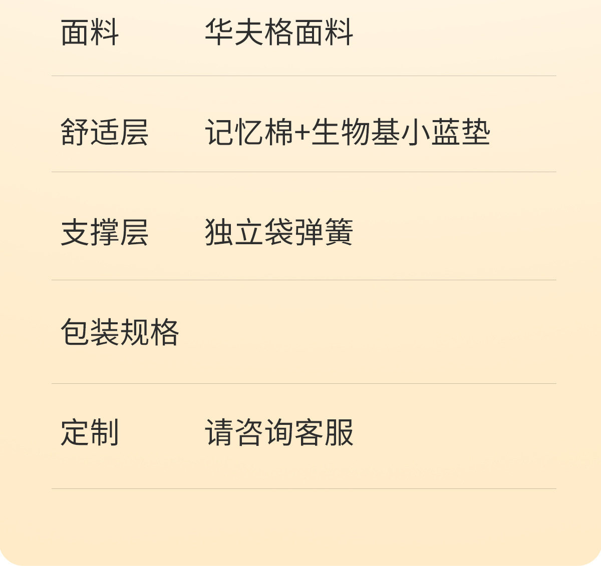 | Spring type | Independent pocket spring |