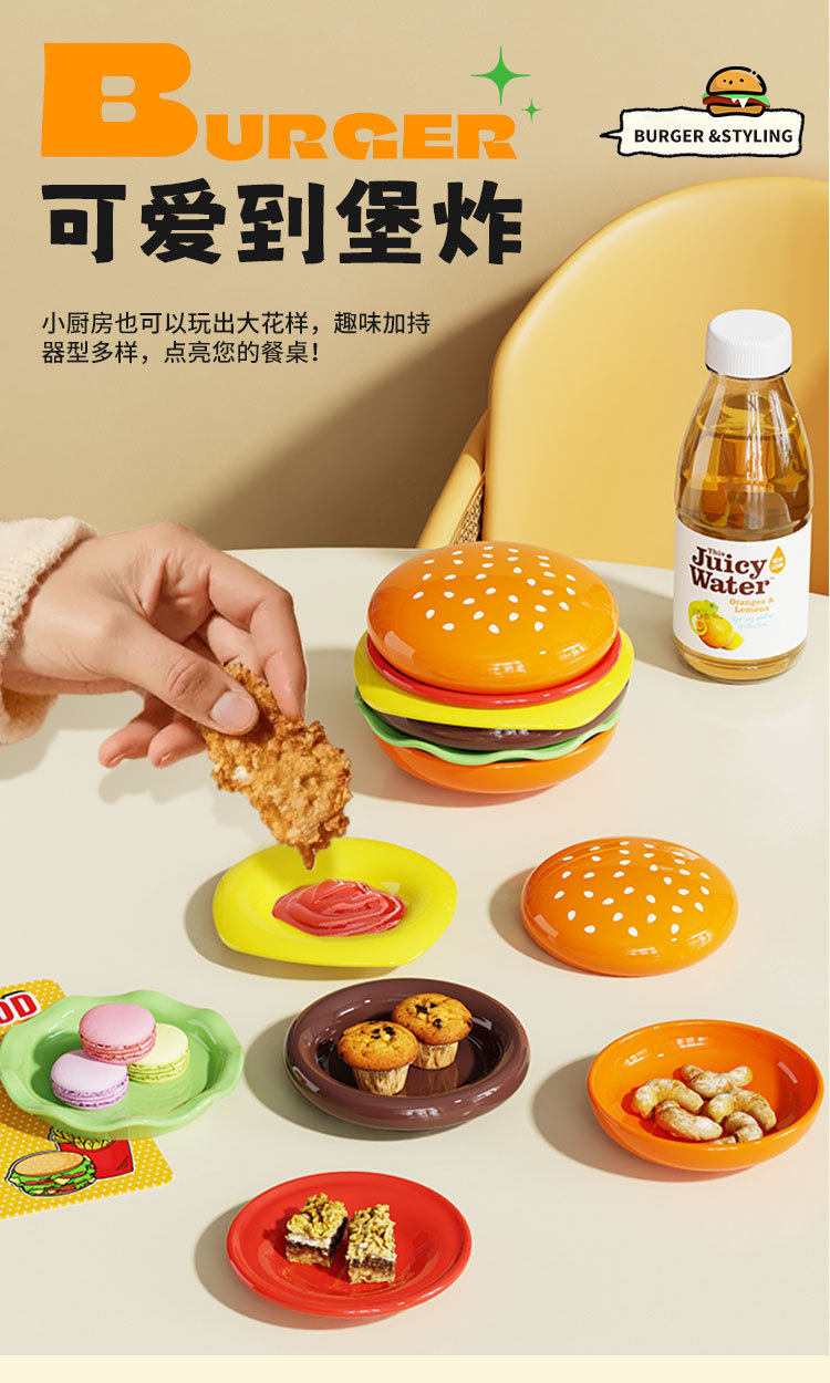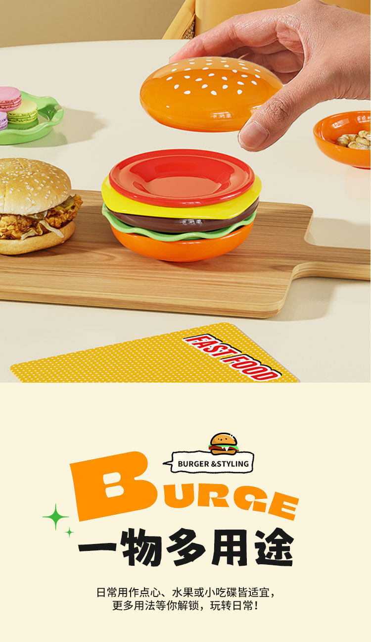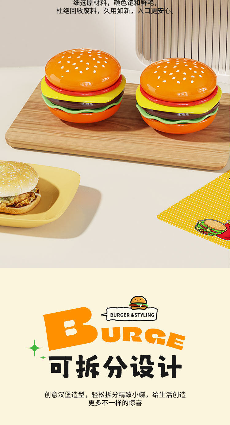 Cute Burger Dish and Bowl Set for Home Kitchen Salad Dessert Snack Plate Exquisite Kidsren's Bowl Dipping Dish Plate