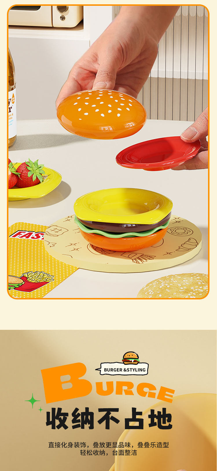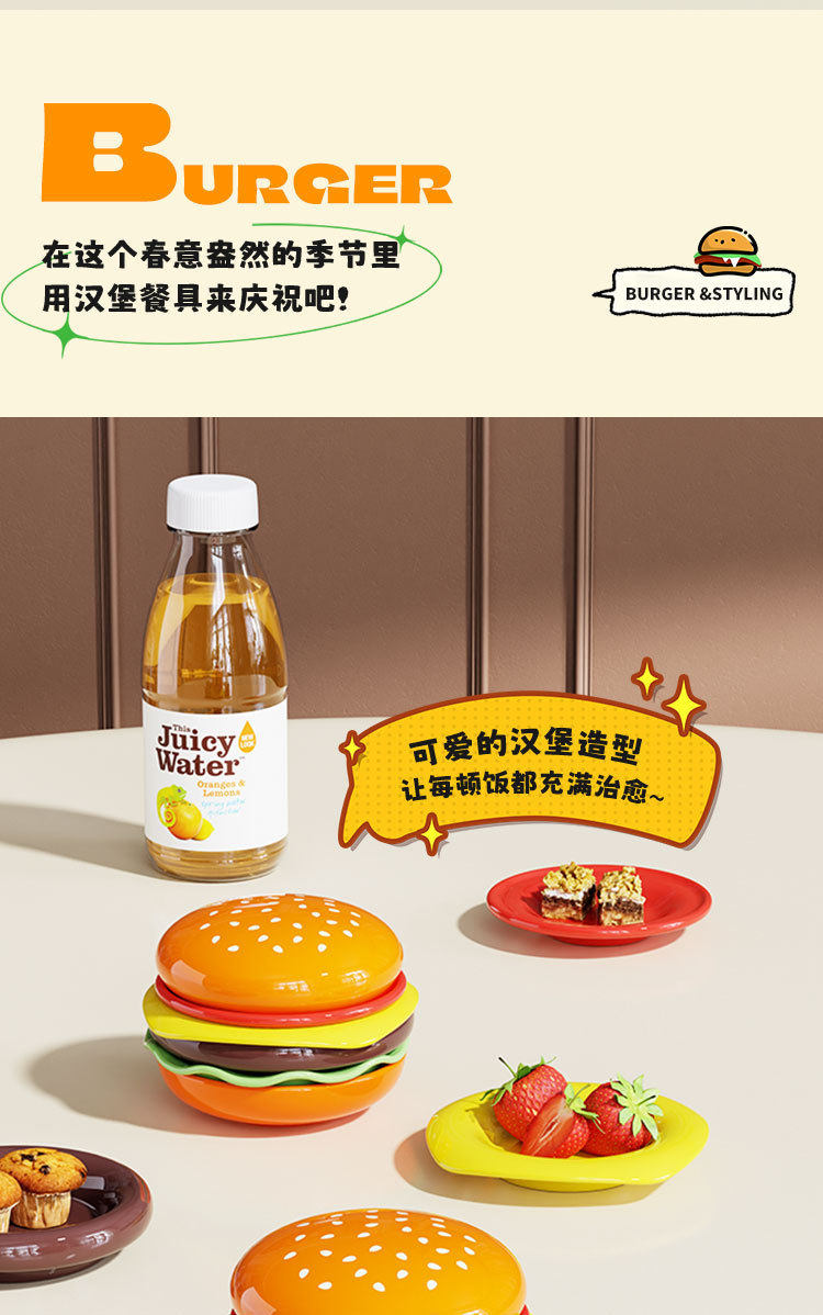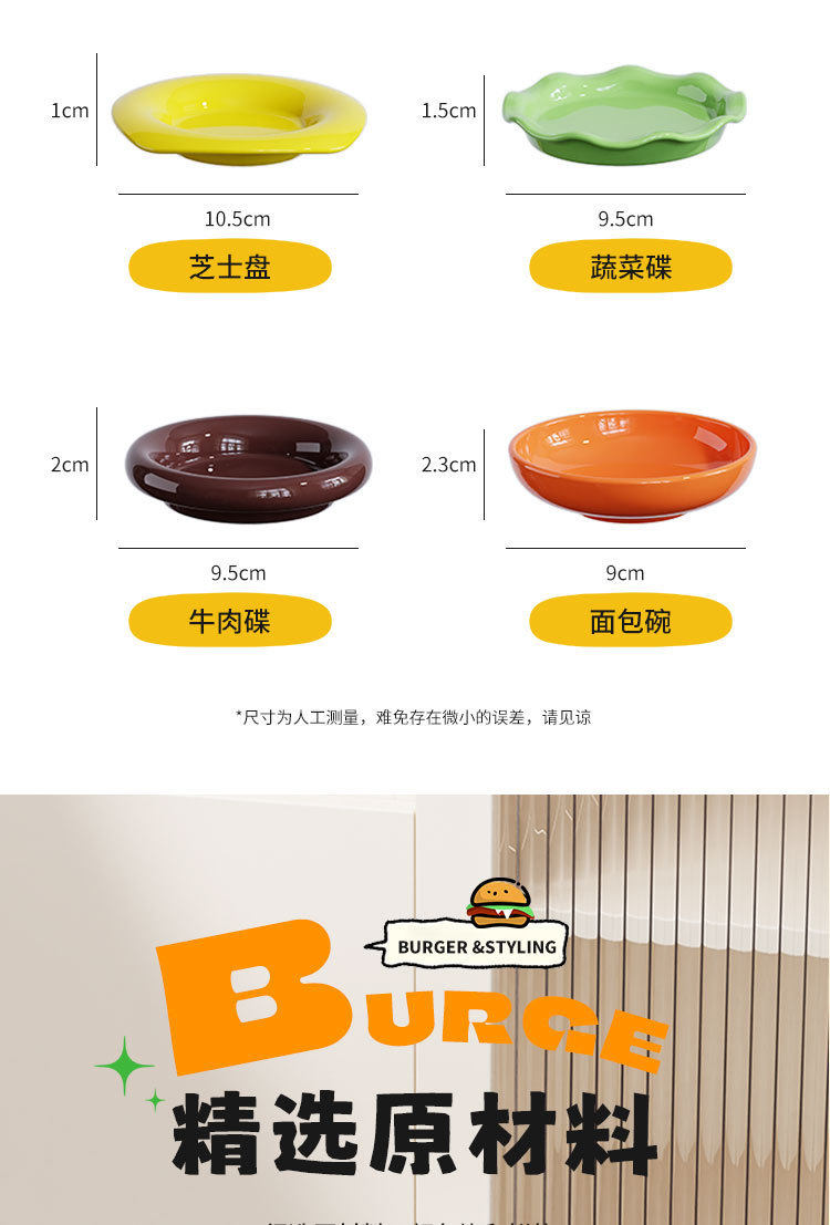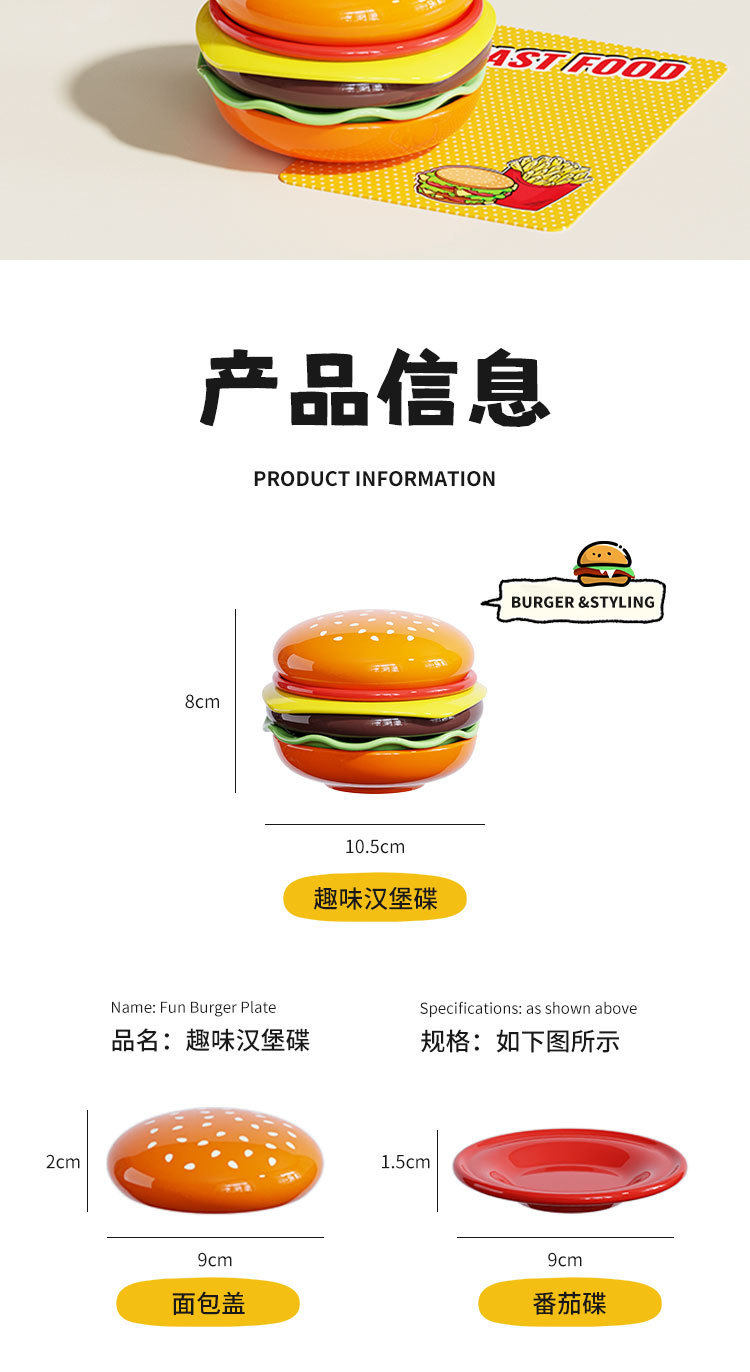 Cute Burger Dish and Bowl Set for Home Kitchen Salad Dessert Snack Plate Exquisite Kidsren's Bowl Dipping Dish Plate