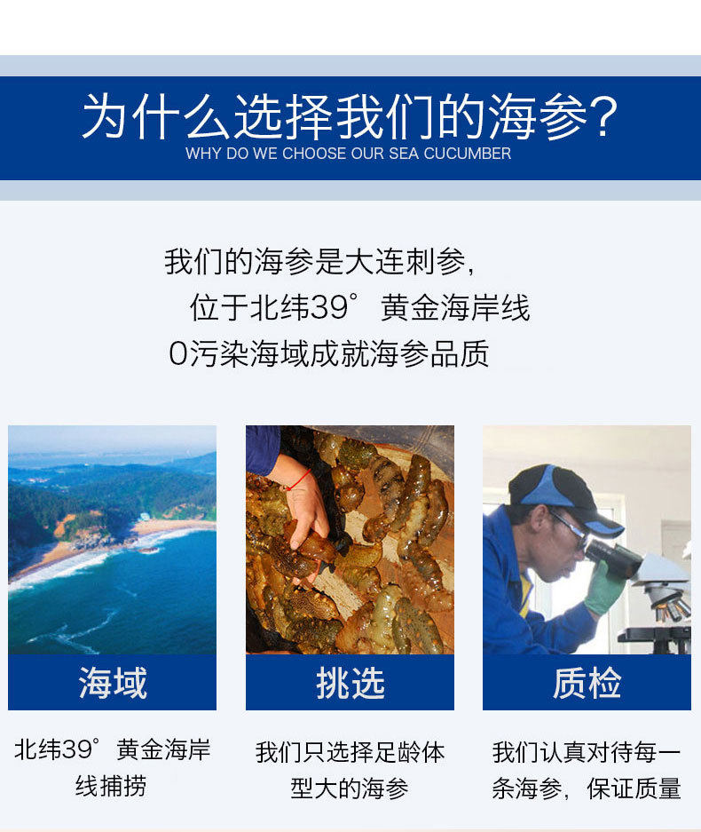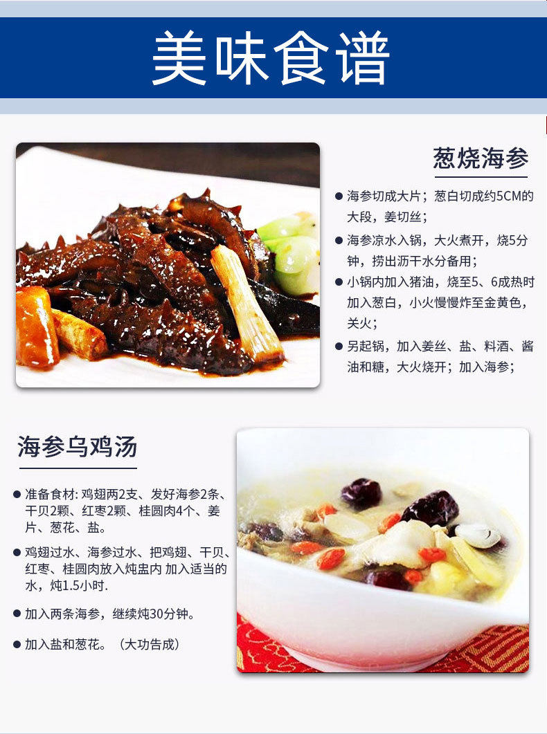 | Packaging specifications | Instant sea cucumber [5-7 heads] 500g/pack,Thousand-piece purchase [8-12 heads] 500g/pack,Instant sea cucumber [15-20 heads] 500g/pack,Instant sea cucumber [20-30 heads] 500g/pack,Fresh food sea cucumber [5-7 heads] 500g/pack,Hot selling fresh sea cucumber [8-12 heads] 500g/pack,Fresh food sea cucumber [15-20 heads] 500g/pack |