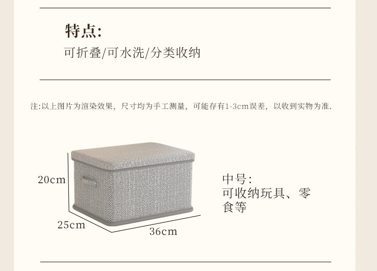 | Color | Gray herringbone pattern-medium size,Gray herringbone pattern-large size,Gray herringbone pattern-extra large,Beige striped medium size [36*25*20],Beige striped large size [45*35*25] |