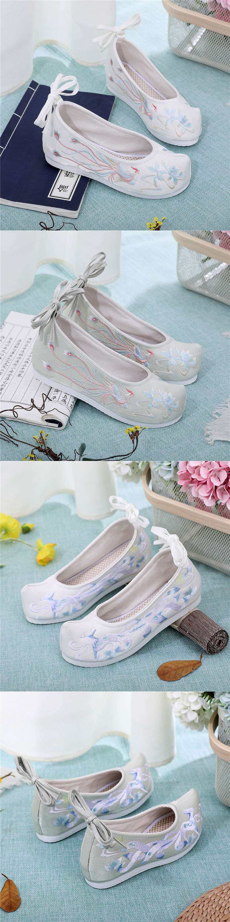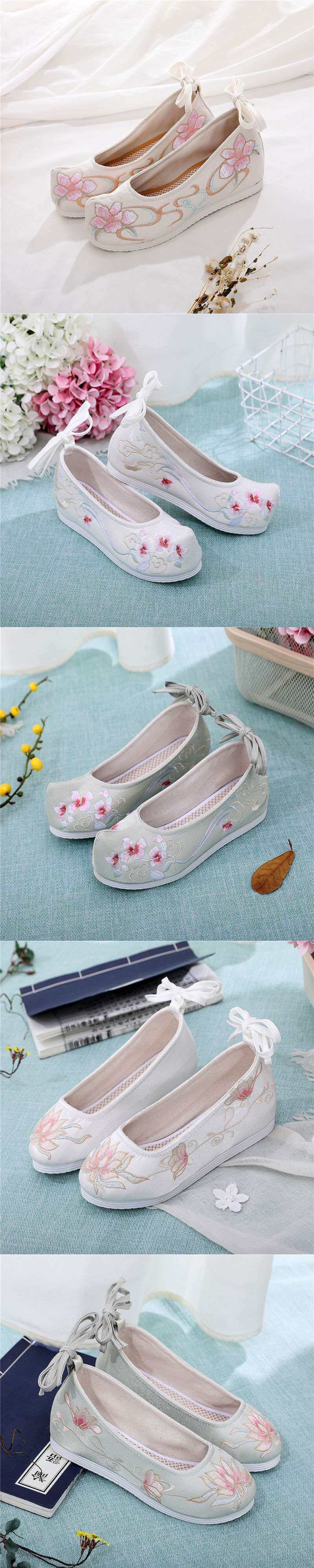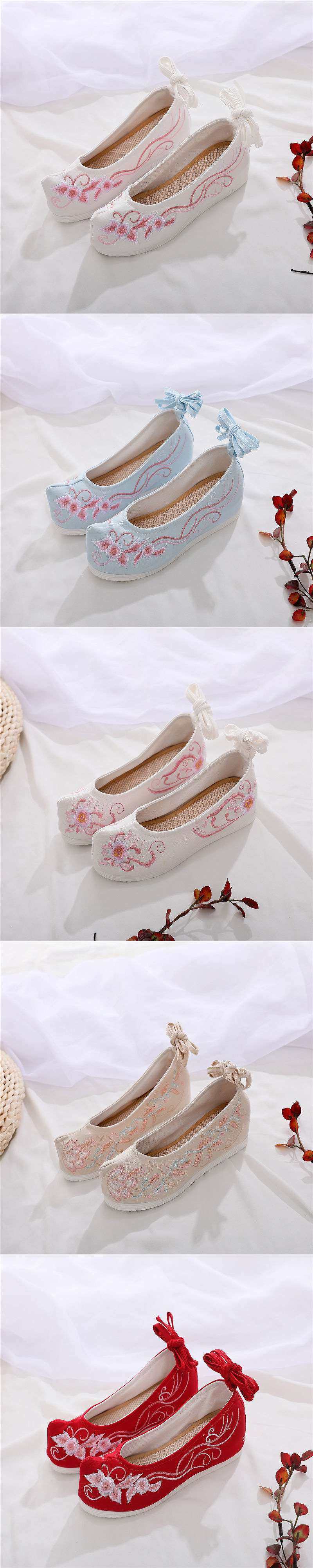 High-Heeled Hanfu Shoes for Women with Ancient Chinese Elements, Xiuhe Shoes with Internal Height Increase, Retro Fairy-Style Ancient Costume Ming Dynasty Embroidered Cloth Shoes