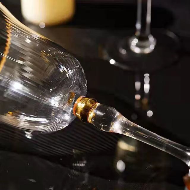 Creative Dense Pattern Gold-Rimmed Bead Red Wine Glass Household Crystal Glass Vertical Stripes Amazon Goblet Champagne Glass