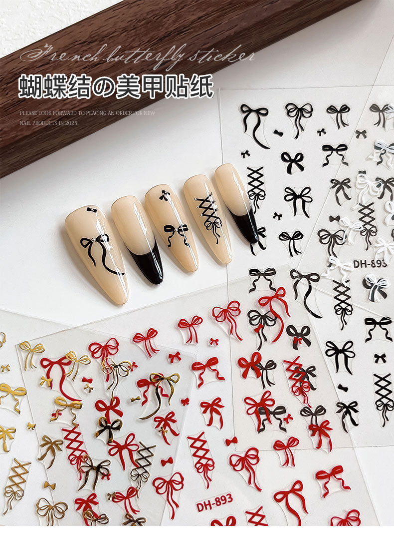 New Ribbon Bow Nail Art Stickers Super Fairy Pure Desire Ballet Shoes Streamers Adhesive Nail Stickers Decoration Wholesale